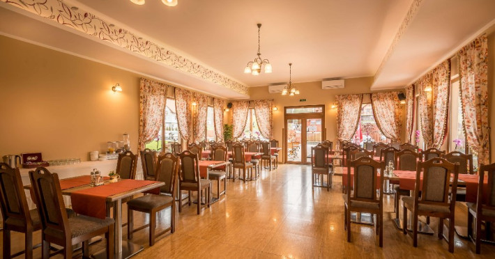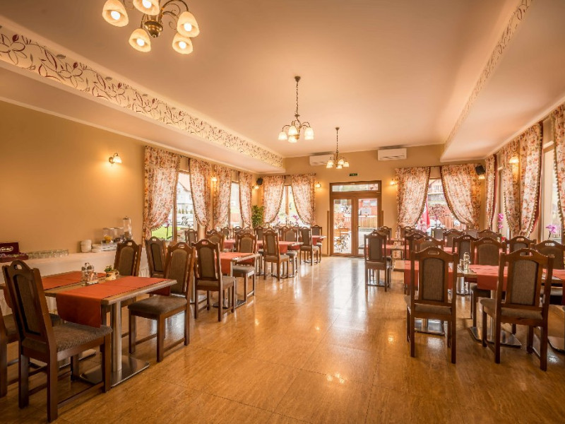 DESCRIERE UNITATE DE CAZARE: Pensiunea noastra dispune de o tiroliana, doua piscine in aer liber si o zona de joaca pentru cei mici. Dupa o zi plina de aventuri, relaxati-va in sauna noastra, jacuzzi si in camera de sare. Vino si bucura-te de o experienta de neuitat la pensiunea noastra din Sovata! Sala de mese are o capacitate de 50 de persoane si este folosita pentru a servi micul dejun si cina