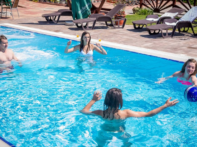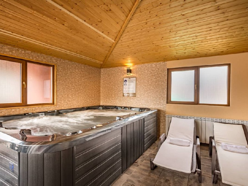 FACILITATI UNITATE: restaurant, piscina exterioara incalzita, jacuzii, sauna, parcare, ciubar cu apa sarata, loc de joaca pentru copii, camera salina.