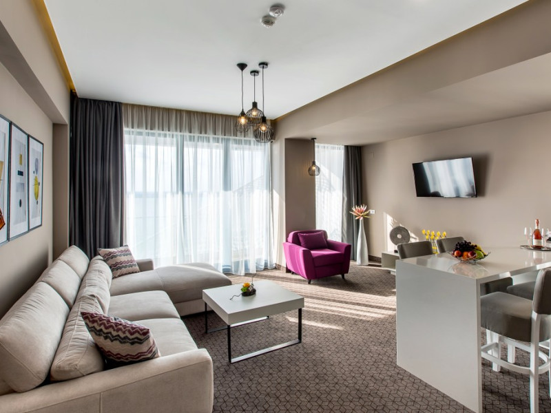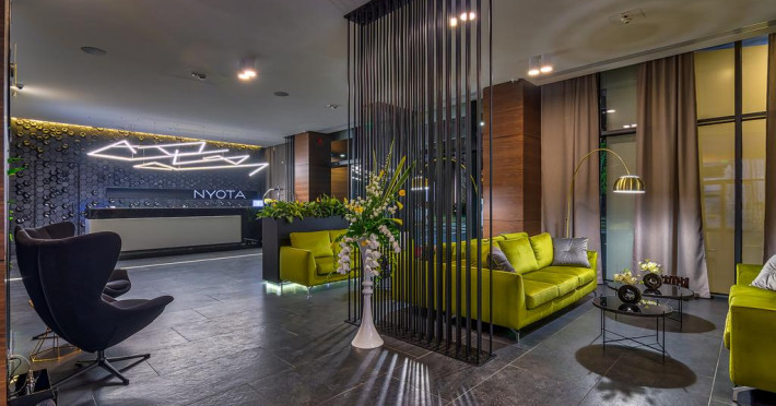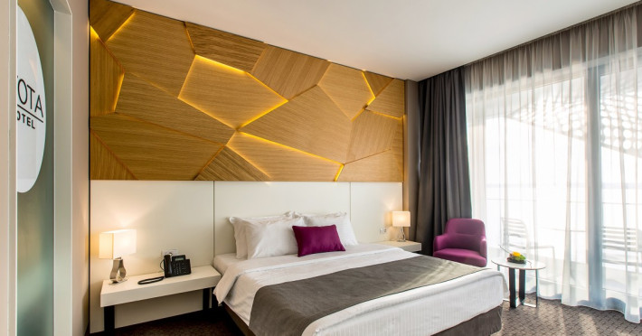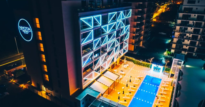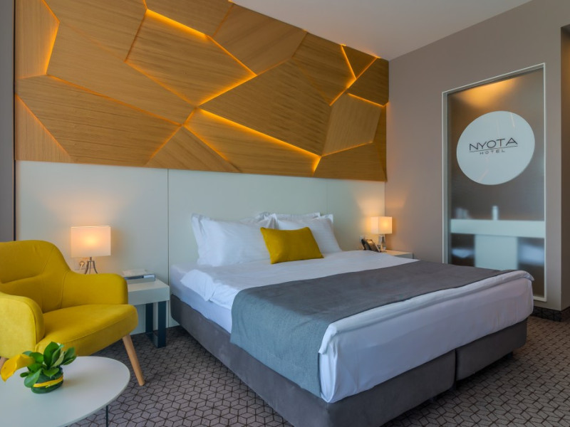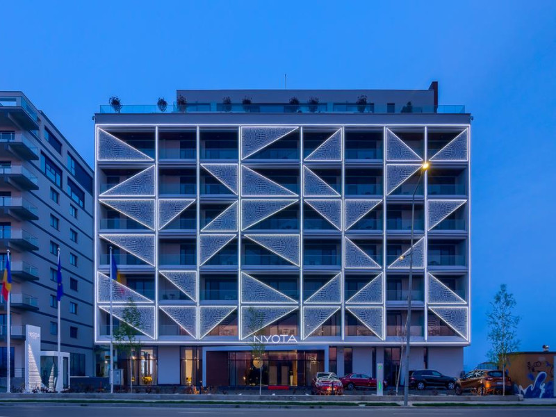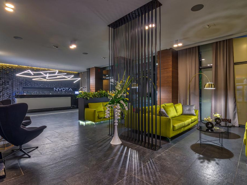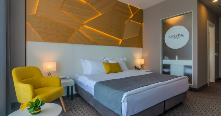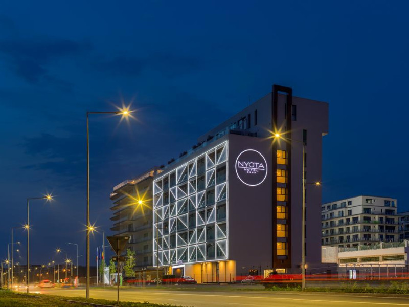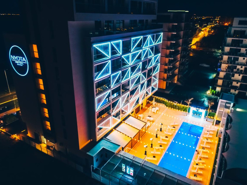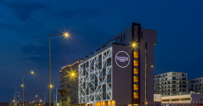 Hotelul Nyota este situat in zona cluburilor din Mamaia Nord, la 100 de metri de plaja. Facilitati hotel: receptie non-stop, restaurant, bar, terasa, lift, aer conditionat, 3 sali de conferinte, facilitati pentru persoane cu mobilitate redusÄ, camere pentru nefumÄtori, parcare etajata, piscina exterioara incalzita, bar la piscina, piscina pentru copii, plaja privata, camera de bagaje, aparat pentru lustruit pantofi, jacuzzi, espressor, room-service, servicii spalatorie, internet WIFI gratuit. Hotelul dispune de 54 de camere Duble Superioare, 5 camere Duble Executive, 14 apartamente din care 2 apartamente exclusiviste la ultimul etaj. Facilitati camere: aer condiÈionat, internet WIFI gratuit, balcon, telefon, TV LED, seif, minibar, alarmÄ, uscÄtor de par, cosmetice baie, parcare privatÄ,piscinÄ.