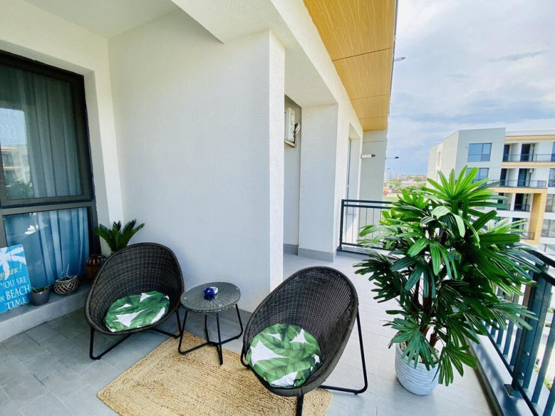 Apartamentele dispun de lift, aer conditionat, self check in - pe baza de cod, rampa de acces persoane cu dizabilitati. Acestea accepta animale de talie mica, contra cost. Apartamentul Seaside Escape Onix este situat la etajul 4 si se compune din living cu canapea extensibila si cu bucatarie open space (dotata cu plita, frigider, cuptor, fierbator, prajitor de paine, microunde, aparat de cafea), dormitor cu pat matrimonial, separat cu usa, baie cu dus walk in, balcon cu o masa si doua scaune, wi-fi, Tv in ambele camere, aer conditionat este disponibil doar in living. Adresa: strada D25, nr 5, bloc B3, etaj 4, ap 56, Onix Blue Apartamentul Nordic 81 este situat la etajul 6 si se compune din living cu canapea extensibila si cu bucatarie open space (dotata cu plita, frigider, microunde, filtru de cafea si masina de spalat rufe), dormitor cu pat matrimonial, separat cu usa, baie cu cabina de dus, balcon cu o masa si doua scaune, TV este disponibil in ambele camere, wi-fi, aer conditionat este disponibil doar in living. Suprafata 52 mp. Adresa : strada D25, nr 5, bloc B2, etaj 6, ap 81, Onix Blue. Apartamentul Casa del Sol Onix se compune din living open space cu canapea extensibila , dormitor cu pat matrimonial si cu bucatarie dotata cu aragaz, cuptor , cuptor cu microunde , aparat de cafea, frigider , vesela, TV, wi-fi, aer conditionat, baie cu cabina de dus, balcon cu o masa si doua scaune. Adresa: strada D25, nr.5 ,bloc B3, etaj 1. Apartamentul Sea Breeze Onix Blue se compune din living open space cu canapea extensibila , dormitor cu pat matrimonial si cu bucatarie dotata cu aragaz, cuptor , cuptor cu microunde , aparat de cafea, frigider , vesela, TV, wi-fi, aer conditionat, baie cu cabina de dus, balcon cu o masa si doua scaune. Adresa: strada D25, nr.5, bloc B4, etaj 5.