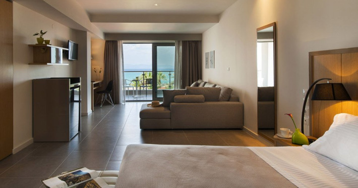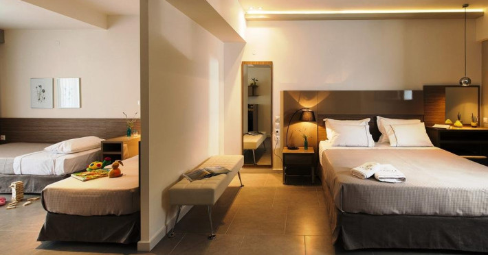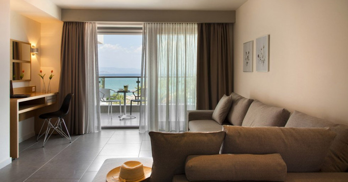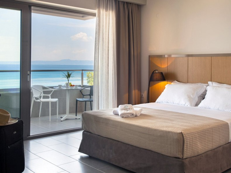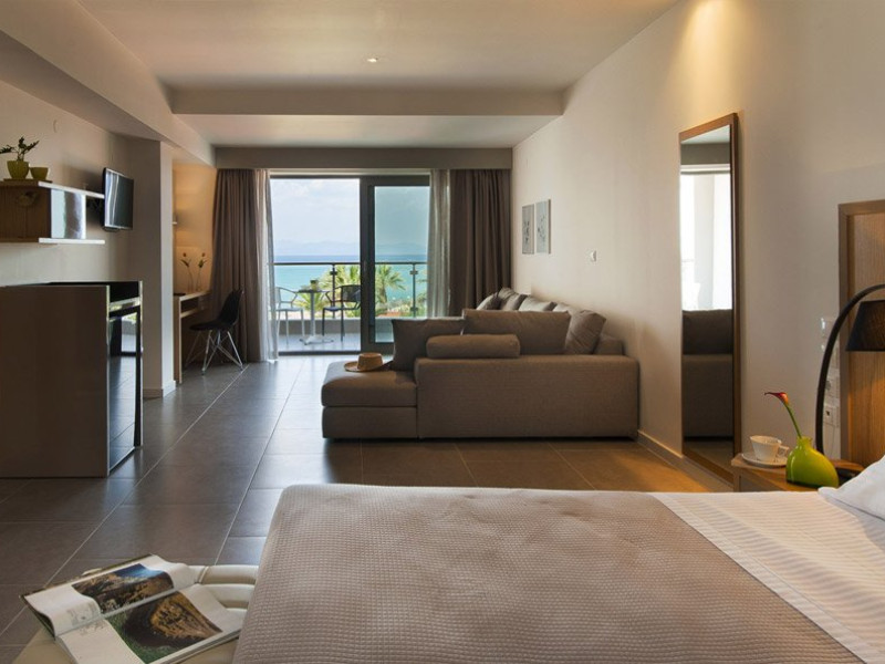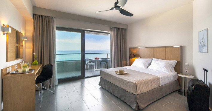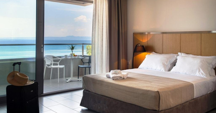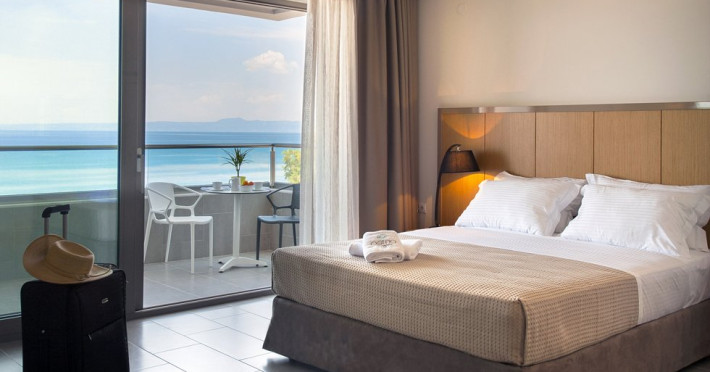 Localizare: Construit in 2014, Hotelul Ostria Sea Side este localizat in Hanioti, una dintre cele mai mari statiuni din peninsula Kassandra. Situat langa plaja cu nisip la Marea Egee si la aproximativ 300 de metri de centrul orasului. Hotelul dispune de 32 de camere, cu vedere frontala la mare, vedere laterala la mare sau vedere la gradina. Facilitati camere: TV cablu, internet WiFi, telefon, minifrigider, fierbator, aer conditionat, seif, grup sanitar propriu cu dus, uscator de par si balcon. Curatenie zilnic in camere, schimbarea lenjeriei se face de 3 ori pe saptamana. Camera Deluxe: 22 mp; cu pat dublu Queen size. Sunt situate la etaj cu vedere la mare. Camere Superior: 28 mp; cu pat dublu Queen size si un pat single. Sunt situate la parter cu vedere la gradina sau la etaj cu vedere laterala la mare. Camere Family: 42 mp; cu un pat dublu King size si 2 paturi single. Sunt situate la parter cu vedere la gradina sau la etaj cu vedere laterala la mare. Suite Ostria: 42 mp; cu un pat dublu King size si 2 canapele.