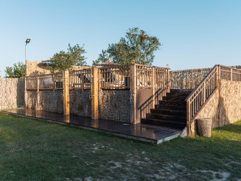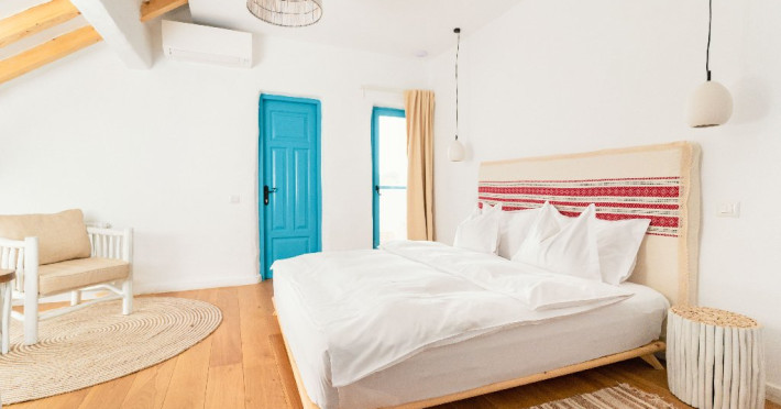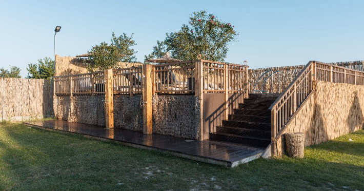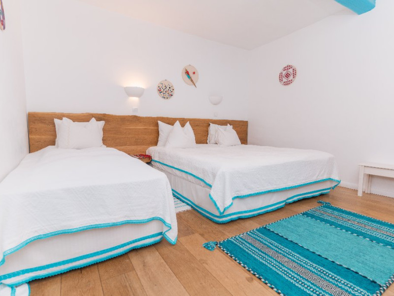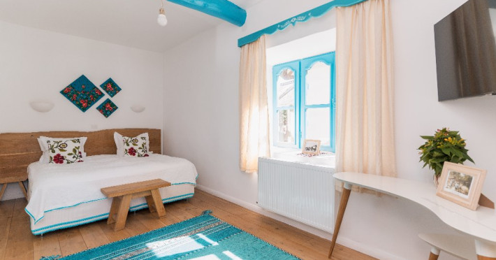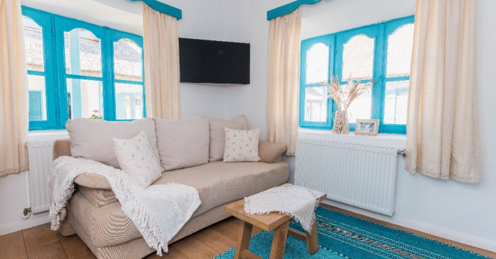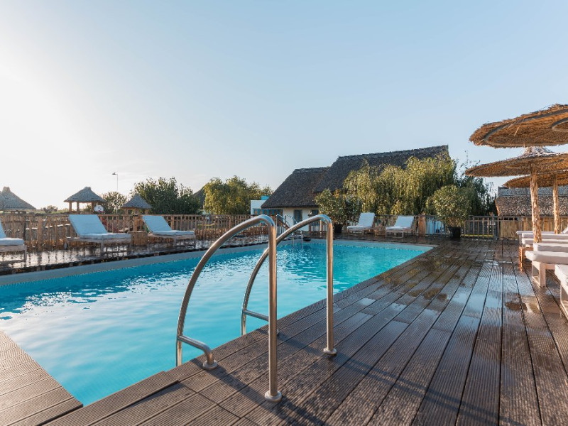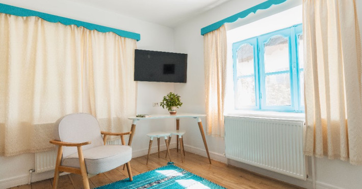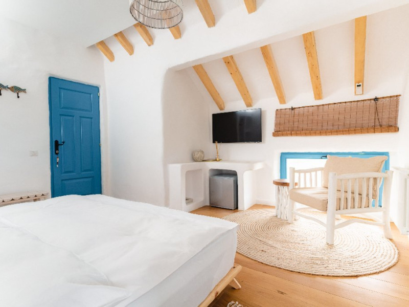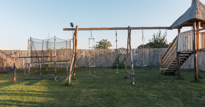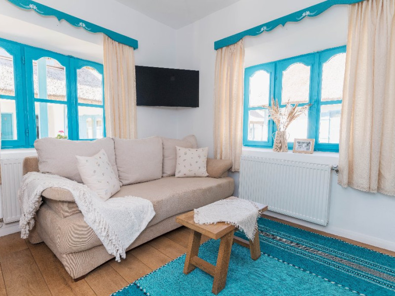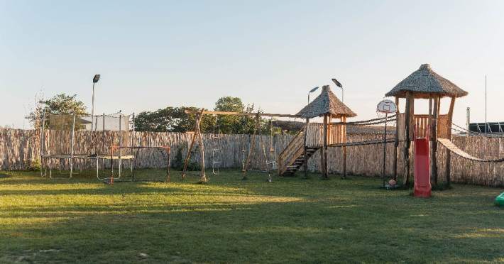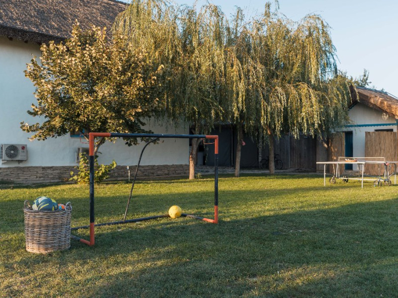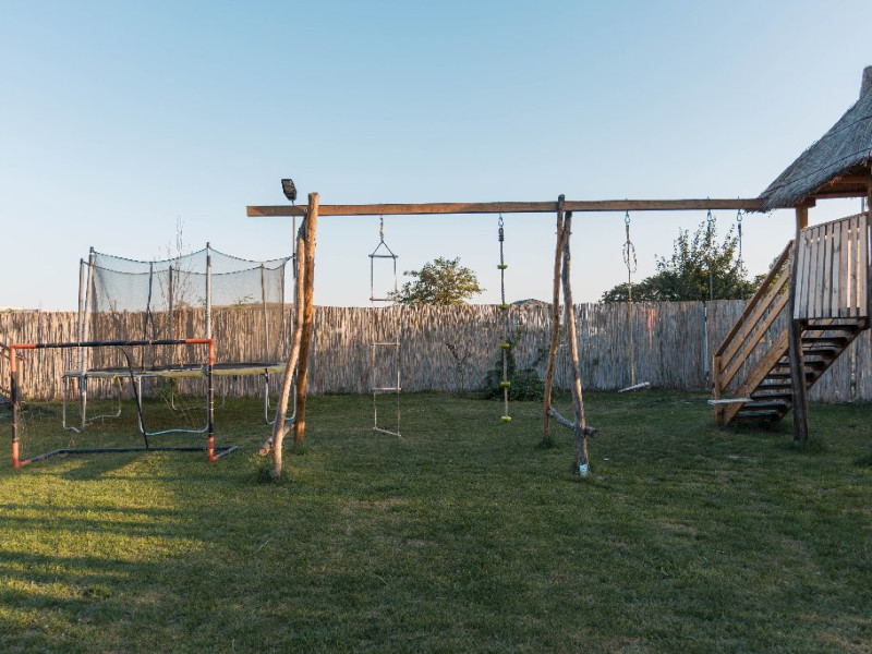 INFORMATII GENERALE Pensiunea 5 Chirpici se afla in Delta Dunarii in localitatea Murighiol, iar accesul se poate face direct cu masina. DESCRIERE UNITATE DE CAZARE Locatia este un sat in miniatura, un mix de traditional si contemporan in inima Deltei, un loc functional, dar care respecta arhitectura si traditiile zonei. Include spatii de cazare finisate modern, restaurant ce va va rasfata cu delicii culinare specifice locului, zone de relaxare, ferma si solar. Zona La Cherhana include spatii de cazare si restaurantul, in zona Arca lui Noe sunt amenajate receptia, lounge-ul comun si sala de jocuri pentru copii, iar zonele Pe Ulita si Casa Batraneasca ofera doar spatii de cazare. FACILITATI UNITATE 5 Chirpici pune la dispozitia clientilor biciclete, o piscina in aer liber sezoniera, o gradina si un lounge comun. Proprietatea are un bar, un restaurant care serveste preparate din bucataria traditionala, o terasa, iar oaspetii au la dispozitie internet Wi-Fi gratuit si parcare privata. Pentru distractia celor mici, pensiunea ofera un teren de joaca pentru copii si o zona interioara pentru divertismentul copiilor. Se poate juca tenis de masa in curte, va puteti bucura de natura si de ferma de animale. Zona este populara pentru pescuit, plimbari private cu barca sau caiace pe lacuri. DESCRIERE CAMERE Zona Pe Ulita In aceasta zona exista patru casute cu veranda, fiecare casuta include doua camere cu intrare individuala. Acestea dispun de un pat matrimonial si baie cu dus. Zona La Cherhana Camera deluxe 1 este o camera cu pat matrimonial, baie cu dus si o terasa spatioasa. Camera deluxe 3 este o camera mare, cu pat matrimonial si canapea extensibila, are balcon, baie cu dus si cada construita din microciment. Camera deluxe 4 are pat matrimonial, balcon, baie cu dus si cada construita din microciment. Apartamentul La Cherhana dispune de doua paturi single in vestibul, baie cu dus si o camera separata cu pat matrimonial si cu terasa spatioasa. Zona Casa Batraneasca Camera tripla include un pat single, baie cu dus si dormitor separat cu pat matrimonial. Suita are doua dormitoare separate din care se intra din hol, un dormitor are un pat matrimonial si celalalt are un pat matrimonial si un pat single, din hol este si accesul in cele doua incaperi, una cu dus si una cu toaleta si chiuveta. Camerele sunt dotate cu dulap pentru haine, televizor cu ecran plat, frigider, climatizare si articole de toaleta. LOCALIZARE Pensiunea 5 Chirpici se afla in Delta Dunarii in localitatea Murighiol, iar accesul se poate face direct cu masina. ATRACTII TURISTICE Cetatea Halmyris, Manastirea Halmyris, Lacul Murighiol. SERVICII DE MASA Mesele se servesc in restaurantul propriu. FACILITATI COPII Piscina exterioara, loc de joaca pentru copii.