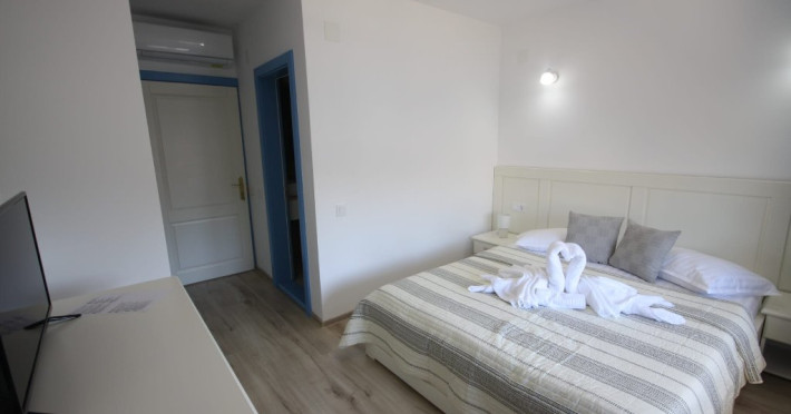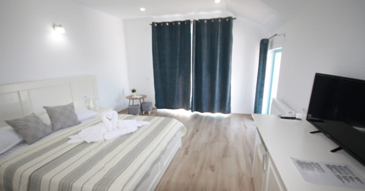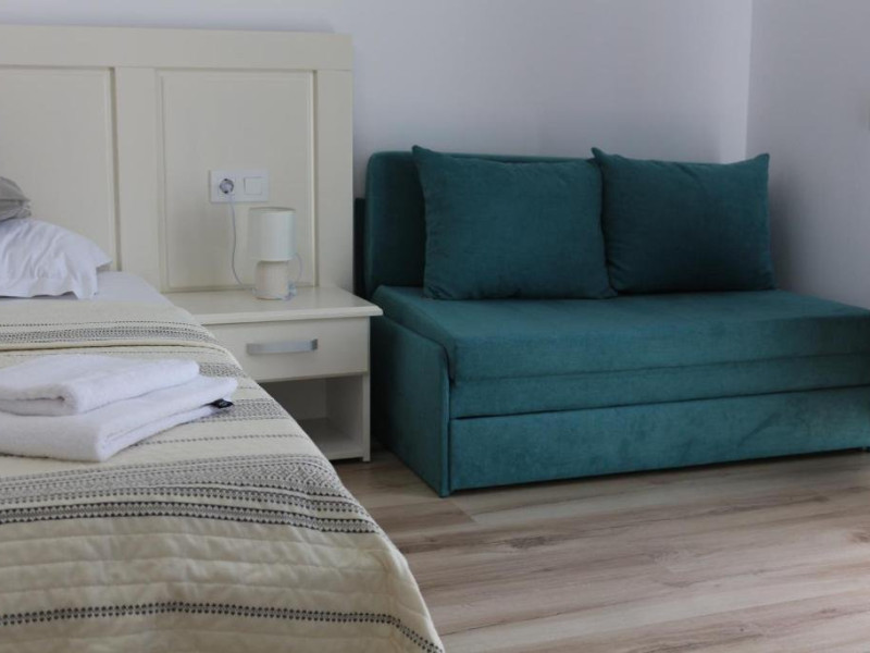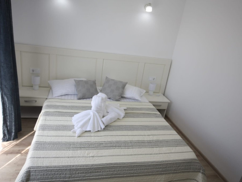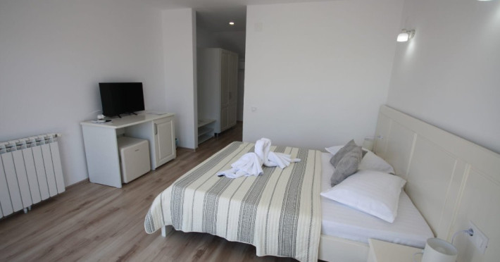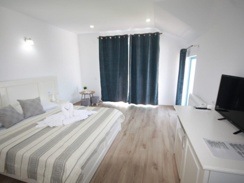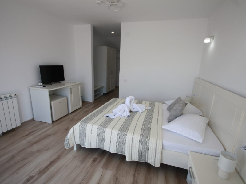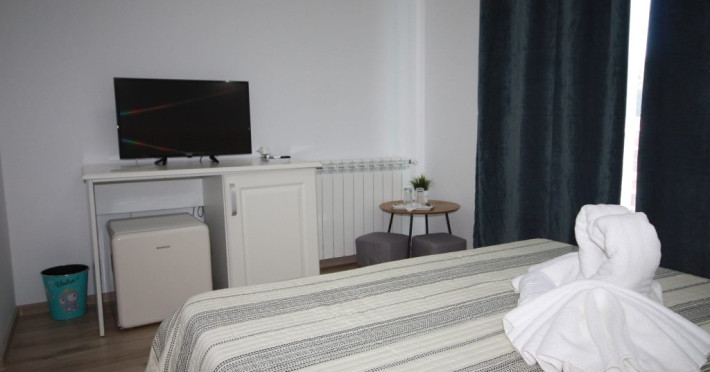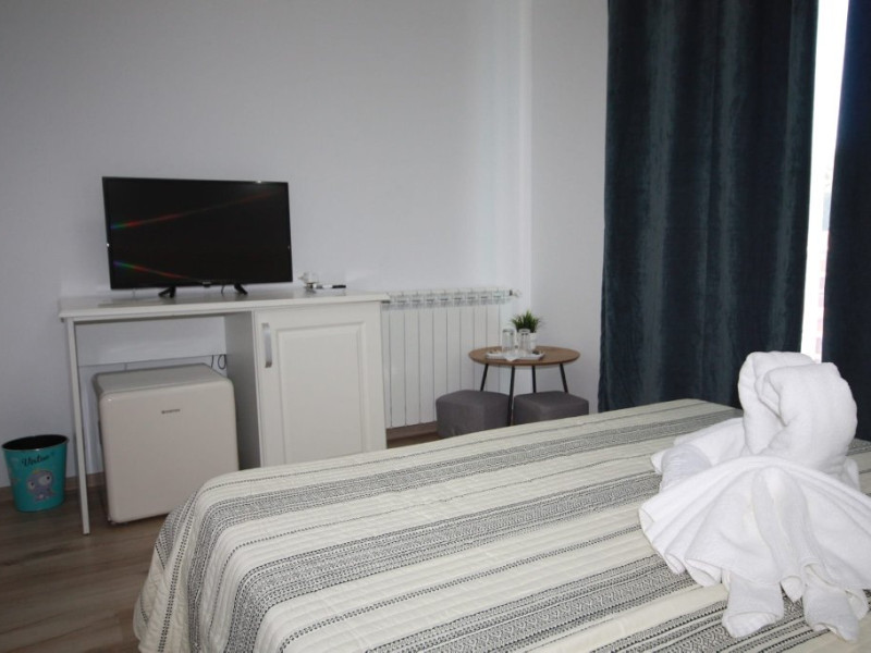 Dotari camere Camera dubla king cu terasa, cu o suprafata de 21 mp, este situata la parter, avand pat matrimonial ( 160 x 200 cm), TV, AC, baie cu dus, minifrigider, internet, cosmetice hoteliere,plasa de tantari, terasa. Poate acomoda 2 adulti si 1 copil, fara pat suplimentar. Camera dubla queen, cu o suprafata de 18 mp, este situata la etaj, avand un pat matirmonial (160 x 200 cm), TV, AC, baie cu dus, minifrigider, interet, cosmetice hoteliere, plasa de tantari, nu are balcon. Poate acomoda 2 adulti si 1 copil, fara pat suplimentar. Camera dubla king cu balcon, cu o suprafata de 24 mp, este situata la etaj, avand pat matrimonial ( 160 x 200 cm) si o canapea extensibila ( 120 x 190 cm), TV, AC, internet, baie cu dus, minifrigider, cosmetice hoteliere, plasa de tantari, balcon. Poate acomoda 3 adulti sau 2 adulti si 2 copii. Check In: 15:00 - 18:00, Check Out: 07:00 - 10:00.