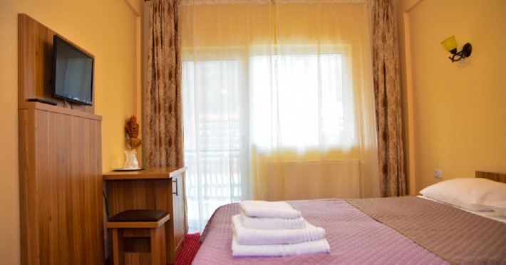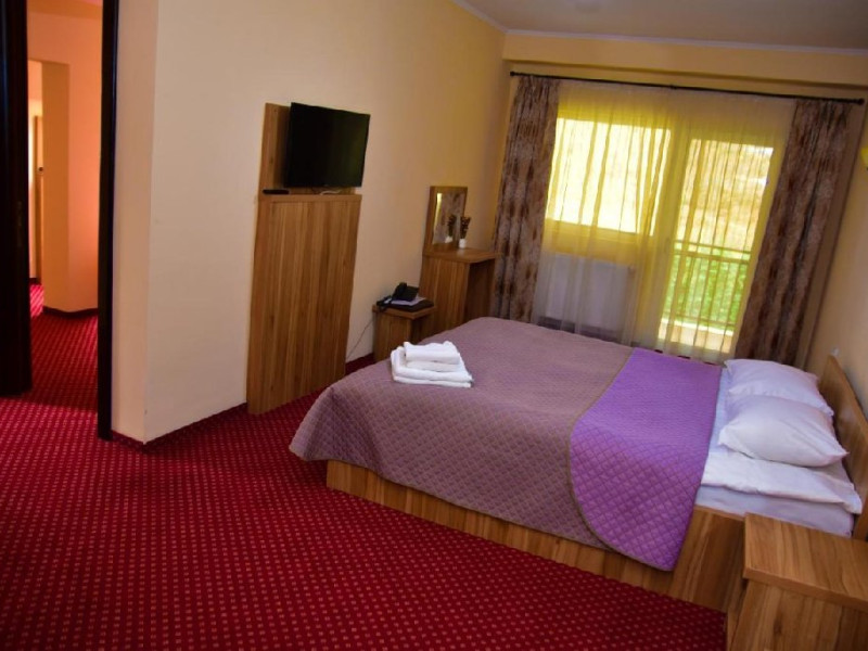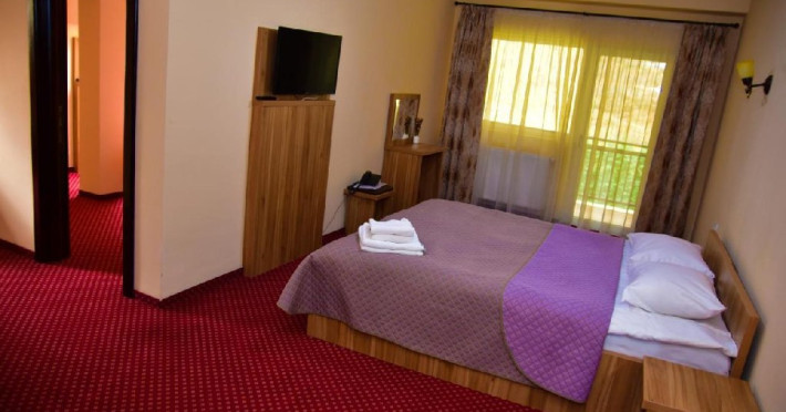 INFORMATII GENERALE Pensiunea Bucura se afla in inima statiunii Calimanesti-Caciulata, vizavi de Cozia Aquapark. DESCRIERE UNITATE DE CAZARE Pensiunea Bucura este perfecta pentru familii, cupluri sau grupuri care doresc sa se bucure de linistea si frumusetea statiunii Caciulata, fie pentru o scurta evadare, fie pentru un sejur prelungit. FACILITATI UNITATE Locatia dispune de restaurant si bar, iar langa pensiune este Hotel Bucura care dispune de facilitati SPA: piscina interioara, jacuzzi interior, jacuzzi exterior cu apa termala, sauna umeda, sauna uscata, fantana de gheata. DESCRIERE CAMERE Camerele duble dispun de pat matrimonial sau doua paturi twin. Camerele triple ofera un spatiu generos, fiind dotate cu pat matrimonial si canapea. Apartamentele dispun de doua dormitoare separate cu pat matrimonial. Toate camerele dispun de balcon, TV, uscator de par, internet Wi-Fi. LOCALIZARE Pensiunea Bucura se afla in inima statiunii Calimanesti-Caciulata, vizavi de Cozia Aquapark. ATRACTII TURISTICE Insula Ostrov, Manastirea Ostrov, Parcul Central Calimanesti, Muzeul de icoane vechi din incinta Manastirii Cozia, Vestigiile romane (castrul Arutela, Masa lui Traian), Parcul National Cozia, Fantana lui Cuza, Pesterile calugarilor apartinand Manastirii Turnu. POLITICI Nu se accepta animale de companie. SERVICII DE MASA Mesele se servesc in restaurantul propriu.