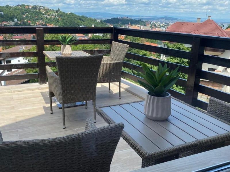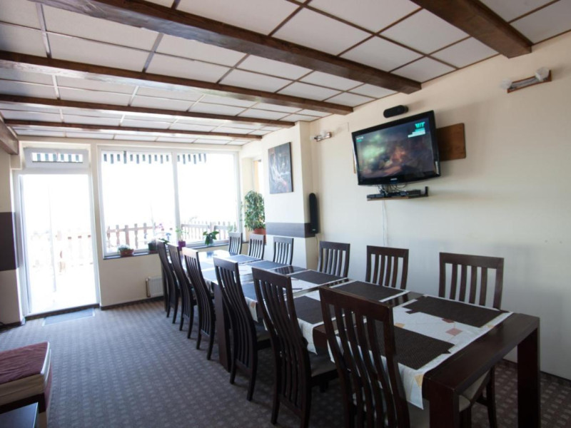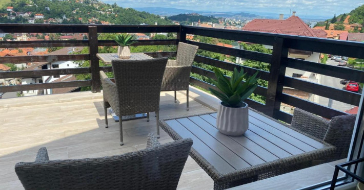 PENSIUNEA CASA CRISTINAâLa poalele Tampeiâ¦. la inaltimeâBucurându-se de o pozitie liniÅtitÄ si la inaltime, ideala pentru cateva zile de relaxare la poalele Muntelui Tâmpa, Pensiunea Casa Cristina oferÄ o priveliÅte panoramica asupra BraÅovului avand 7 camere duble cu baie proprie, o suita cu doua camere cu o baie pentru 4 persoane, ideala pentru familii, livingroom si o terasÄ mare accesibila tuturor oaspetilor. BucÄtÄria este dotata cu fierbator de apa, filtru de cafea, cuptor cu microunde, plita electrica, frigider, vesela si tacamuri. Acces gratuit la internet de mare viteza Wi-Fi. Centrul istoric al BraÅovului cu principalele puncte de interes, fortificatii, muzee, restaurante Åi magazine, este la 15-20 minute de mers pe jos, Piata Unirii, Catedrala Sf. Nicolae si prima scoala romaneasca este la 10 minute de mers pe jos. Gara BraÅov este la 5 km, iar staÅ£iunea de schi Poiana BraÅov se aflÄ la14 km, 25 de minute de mers cu maÅina, Plecand de la Casa Cristina puteti vizita Cetarea Rasnov, Castelul Bran, Castelul Peles, Transfagarasan, Sighisoara, Lacul Sfanta Ana, Bisericile Fortificate din Harman si Prejmer, Rezervatia de zimbrii din Vama Buzaului. De asemenea puteti porni in drumetii in Muntii Postavarul, Piatra Craiului, Bucegi, Baiului, Piatra Mare, Ciucas.