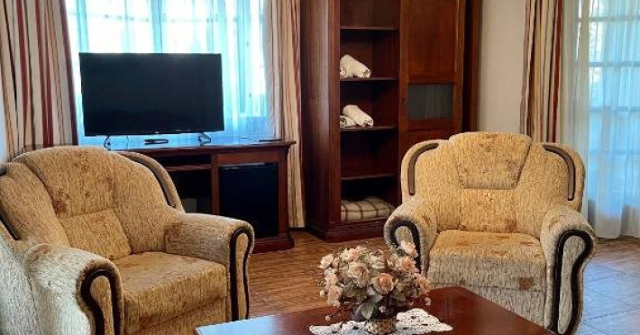 INFORMATII GENERALE Pensiunea Casa Iurca de Calinesti este situata in inima Maramuresului istoric, in municipiul Sighetu Marmatiei, un loc bogat in istorie si legende sculptate in lemn cu sarguinta si darzenie de catre oamenii deosebiti ai acestor locuri. DESCRIERE UNITATE DE CAZARE Familia Iurca de Calinesti joaca un rol important in viata comunitatii maramuresene. Inca din anul 1361, a fost mentionata in documentele medievale alaturi de alte familii nobile, primind de-a lungul timpului doua dimplome nobiliare: mai intai in 1470 de catre regele Matia Corvinul si mai apoi in 1569 de catre regele Sigismund al II-lea, atestand rolul important al familiei Iurca pe plaiurile maramuresene. FACILITATI UNITATE Pensiunea dispune de restaurant, internet Wi-Fi, parcare. DESCRIERE CAMERE Pensiunea Casa Iurca de Calinesti detine camere duble si apartamente. Toate camerele sunt pentru nefumatori, insa majoritatea au balcon (cu exceptia a 2 camere matrimoniale si a unuia dintre apartamente). LOCALIZARE Pensiunea Casa Iurca de Calinesti este situata in inima Maramuresului istoric, in municipiul Sighetu Marmatiei. ATRACTII TURISTICE Cimitirul vesel din Sapanta, Memorialul Victimelor Comunismului si Al Rezistentei, Muzeul Maramuresului. POLITICI Nu sunt permise animalele de companie. SERVICII DE MASA Restaurantul are o capacitate de 60 de locuri la care se adauga cele 60 de locuri de pe terasa.La parter este pus la dispozitie salonul de mic dejun cu 42 de locuri. FACILITATI COPII Se poate adauga maxim un pat suplimentar in camera dubla. FACILITATI EVENIMENTE Locatia detine 2 sali de evenimente: Salonul Baroc cu o capacitate maxima de 80 de locuri si Sala Vitralis cu o capacitate maxima de 200 de locuri.