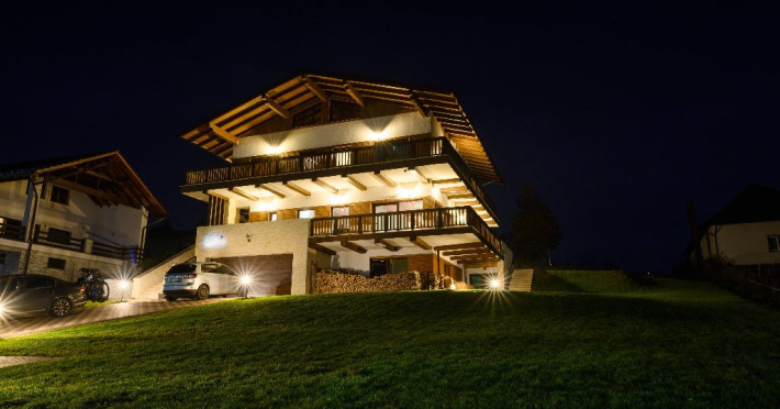 Pensiunea Chalet First Hill este construita in stil tirolez cu 5 dormitoare, 7 bai, sauna, sala de fitness, foisor.