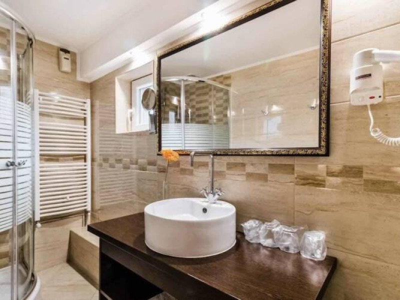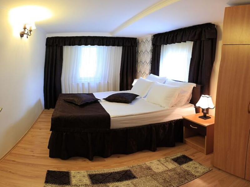 Its nice to get back here after long walks around the city. Guest house Pensiunea Cristina is located in Rasnov. This guest house is located in the center of the city. Before going to bed, you can walk around the main landmarks of the city.Its nice to get back here after long walks around the city. Guest house Pensiunea Cristina is located in Rasnov. This guest house is located in the center of the city. Before going to bed, you can walk around the main landmarks of the city.In the shared kitchen, you can cook anything you want. Free Wi-Fi on the territory will help you to stay on-line. Specially for tourists who travel by car, theres a parking zone. Also, the following services are available for guests at the guest house: a massage room, a sauna and a spa center.Sports fans are going to love a fitness center. The following services are available At the guest house for winter sports fans: a skiing area and ski facilities rental. You wont be bored as at the guest house you will find a ping-pong area, a picnic area and a barbeque area. Children will be happy, there is a playroom for them.Accessibility: there is an elevator/lift. Additional services that the guest house offers to its guests: a laundry, private check-in and check-out and a safe-deposit box. The staff of the guest house speaks English, German and French.In the shared kitchen, you can cook anything you want. Free Wi-Fi on the territory will help you to stay on-line. Specially for tourists who travel by car, theres a parking zone. Also, the following services are available for guests at the guest house: a massage room, a sauna and a spa center.Sports fans are going to love a fitness center. The following services are available At the guest house for winter sports fans: a skiing area and ski facilities rental. You wont be bored as at the guest house you will find a ping-pong area, a picnic area and a barbeque area. Children will be happy, there is a playroom for them.Accessibility: there is an elevator/lift. Additional services that the guest house offers to its guests: a laundry, private check-in and check-out and a safe-deposit box. The staff of the guest house speaks English, German and French..7 0 available 0
