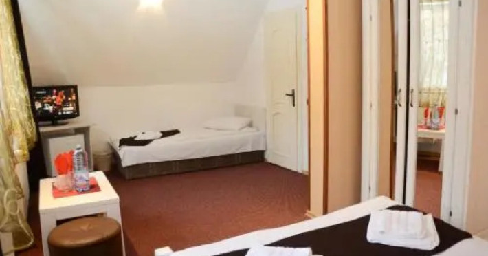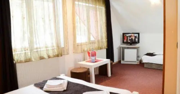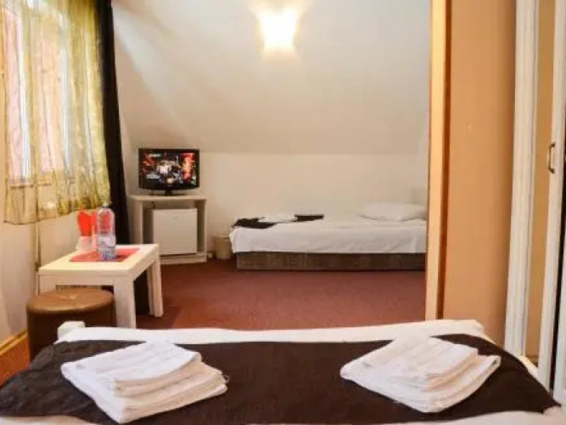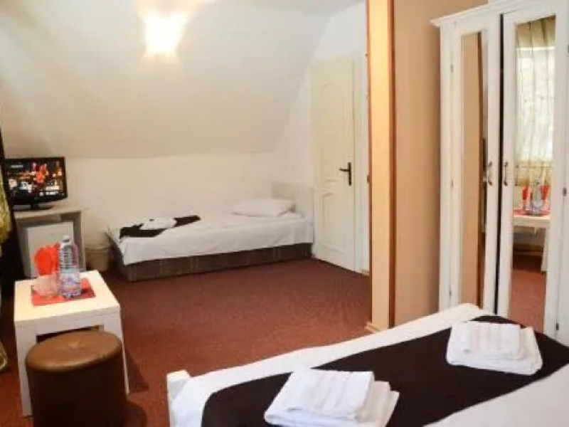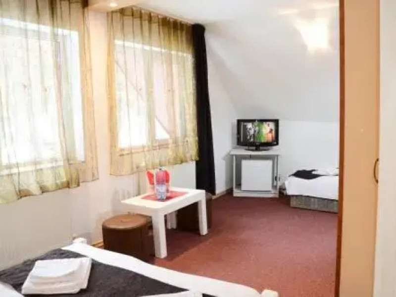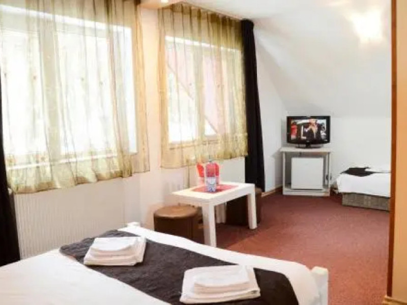 Want to save money while travelling? Its easy: hotel Pensiunea Happy Inn is located in Vatra Dornei. This hotel is located 1 km from the city center.Want to save money while travelling? Its easy: hotel Pensiunea Happy Inn is located in Vatra Dornei. This hotel is located 1 km from the city center.You can stop by the bar. You can stop by the restaurant. The hotel cafe is a nice place to have a snack. Free Wi-Fi on the territory will help you to stay on-line.The beauty and wellness services: a sauna. For winter sports fans, the following services are available: a skiing area. You wont be bored as at the hotel you will find a barbeque area. There are other services available for the guests of the hotel. For example, ironing.The staff of the hotel speaks English, Spanish, Italian and French.You can stop by the bar. You can stop by the restaurant. The hotel cafe is a nice place to have a snack. Free Wi-Fi on the territory will help you to stay on-line.The beauty and wellness services: a sauna. For winter sports fans, the following services are available: a skiing area. You wont be bored as at the hotel you will find a barbeque area. There are other services available for the guests of the hotel. For example, ironing.The staff of the hotel speaks English, Spanish, Italian and French.In the room, for you, there is a TV. Please note that the listed services may not be available in all the rooms.In the room, for you, there is a TV. Please note that the listed services may not be available in all the rooms.Guests should inform the hotel in advance of their expected time of arrival. In case of arrival later 11:00 PM, guests should inform the hotel in advance and receive check-in instructions. Guests can find contact details on their booking confirmation. Parties are not allowed.