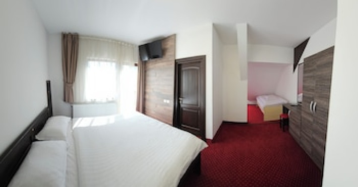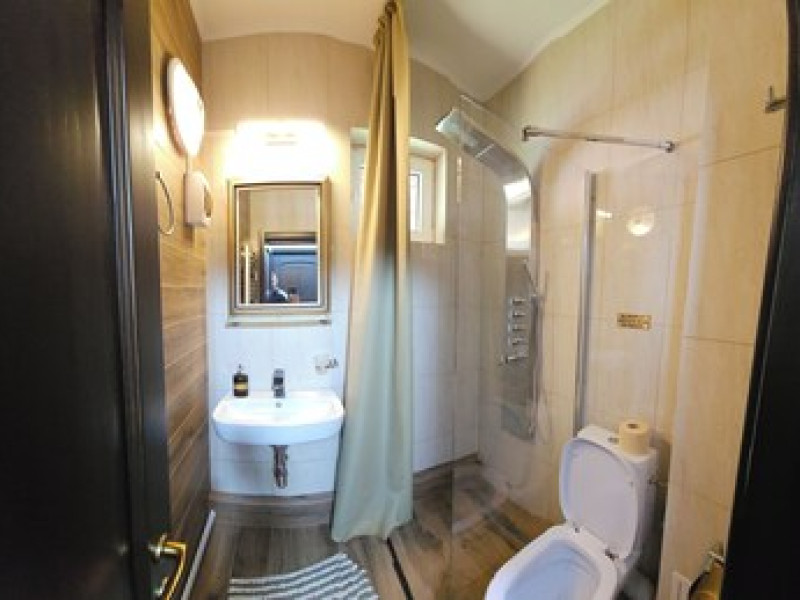 Offering quiet street views, Pensiunea Miruna in Moieciu de Jos offers accommodations, barbecue facilities, and a shared lounge. Each accommodation at the 3-star guest house has garden views, and guests can enjoy access to free bikes and a bar. Rooms come with a terrace with mountain views and free Wifi. All units come with a seating area, a flat-screen TV with satellite channels, and a private bathroom with slippers, walk-in shower, and bath. Theres also a fridge, minibar, and a kettle. At the guest house, units come with bed linen and towels. Buffet and à la carte breakfast options with local specialities, fruit, and juice are available. Guests may eat at the on-site family-friendly restaurant, which is open for dinner and lunch. A car rental service is available at the guest house. Bran Castle is 1.5 miles from Pensiunea Miruna, while Dino Parc is 10 miles away. Sibiu International Airport is 89 miles from the property, and the property offers a paid airport shuttle service.Checkin Time: 14:00Checkin End Time: 18:00Checkout From: 08:00Checkout End Time: 11:00