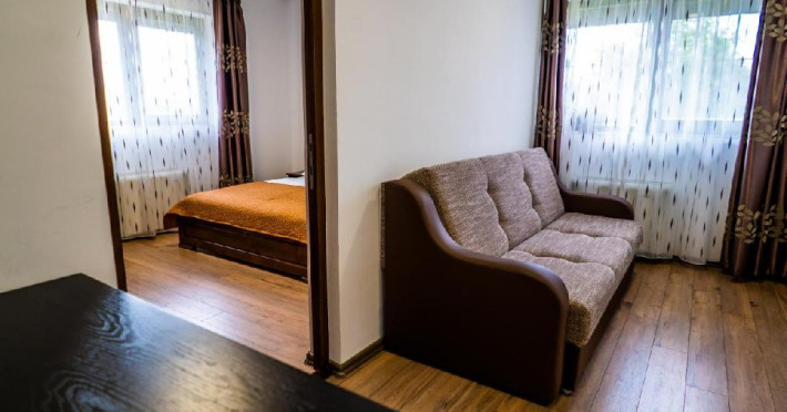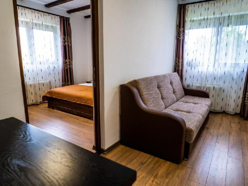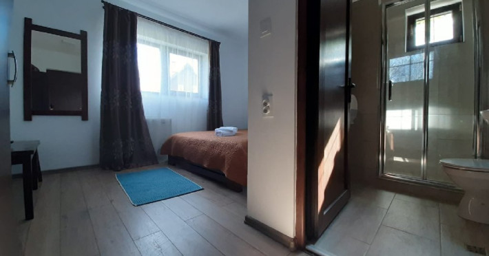 DESCRIERE CAMERE: Pensiunea ofera 6 camere duble si 2 apartamente cu un pat matrimonial si canapea extensibila, fiecare cu baie proprie. Camere duble dotate cu baie proprie, pat matrimonial, Tv satelit, uscator de par. Apartamentele sunt formate din dormitor si living cu canapea extensibila, minifrigider.