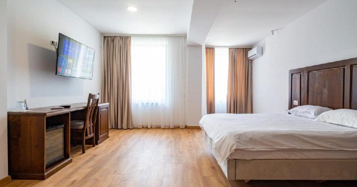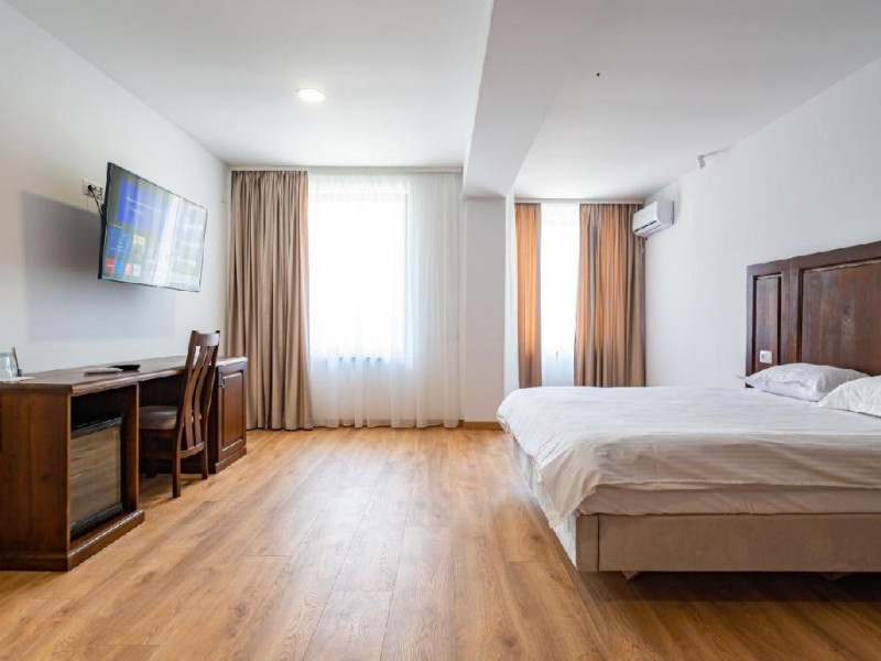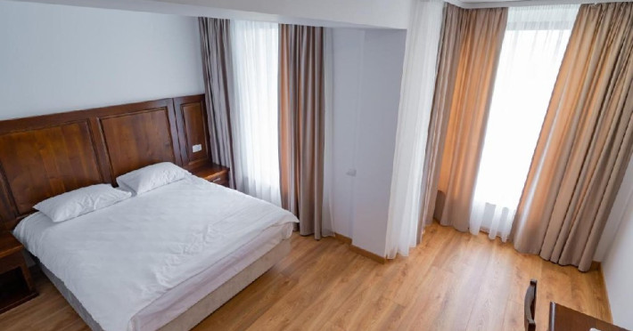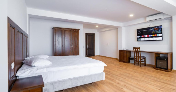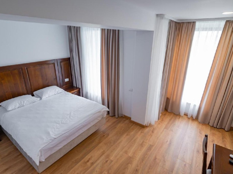 Dotari camere: Camerele duble (24, 34) dispun de pat matrimonial (160x200), LCD tv, minibar, aer conditionat, incalzire in pardoseala, podele de parchet, wireless internet, acces pe baza de card magnetic, baie cu dus si uscator de par, balcon. Suprafata 30 mp (inclusiv balcon). Camerele duble family (22,32,23,33) dispun de pat matrimonial (160x200) si o canapea extensibila (160x200 extinsa), LCD tv, minibar, aer conditionat, incalzire in pardoseala, podele de parchet, wireless internet, acces pe baza de card magnetic, baie cu dus si uscator de par, balcon. Suprafata 40 mp (inclusiv balcon). Camerele duble family (21,31) sunt mai generoase in suprafata, dispun de pat matrimonial (180x200) si o canapea extensibila (180x200 extinsa), LCD tv, minibar, aer conditionat, incalzire in pardoseala, podele de parchet, wireless internet, acces pe baza de card magnetic, baie cu dus si uscator de par, balcon. Suprafata 55 mp (inclusiv balcon). Camera dubla family (11) dispune de pat matrimonial (160x200) si o canapea extensibila (160x200 extinsa), LCD tv, minibar, aer conditionat, incalzire in pardoseala, podele de parchet, wireless internet, acces pe baza de card magnetic, baie cu dus si uscator de par, balcony. Suprafata 44 mp (inclusiv balcon). Patul suplimentar este de tip pliant (100x200).