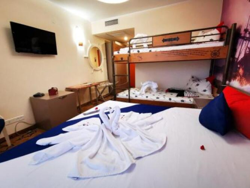 Here, you wont puzzle over the place to go as everything you need is close by. Resort Pirates Resort is located in Mamaia. This resort is located in the center of the city. In the morning, have a cup of coffee while looking at the city from the window. You can take a walk and explore the neighbourhood area of the resort Mamaia Beach.Here, you wont puzzle over the place to go as everything you need is close by. Resort Pirates Resort is located in Mamaia. This resort is located in the center of the city. In the morning, have a cup of coffee while looking at the city from the window. You can take a walk and explore the neighbourhood area of the resort Mamaia Beach.You can stop by the bar. Taste the local cuisine and have a rest in the restaurant. If you cant live without coffee, drop by the cafe. Want to be always on-line? Wi-Fi is available.Specially for tourists who travel by car, theres a free parking zone. Get ready for a fun and exciting vacation! Heres what you will find on the premises: a barbeque area. Swimming fans are going to enjoy a pool and an outdoor pool. Children will be happy, there is a playroom for them.There are other services available for the guests of the resort. For example, a laundry, dry cleaning, an ATM and a safe-deposit box. The staff of the resort will be happy to talk to you in English.You can stop by the bar. Taste the local cuisine and have a rest in the restaurant. If you cant live without coffee, drop by the cafe. Want to be always on-line? Wi-Fi is available.Specially for tourists who travel by car, theres a free parking zone. Get ready for a fun and exciting vacation! Heres what you will find on the premises: a barbeque area. Swimming fans are going to enjoy a pool and an outdoor pool. Children will be happy, there is a playroom for them.There are other services available for the guests of the resort. For example, a laundry, dry cleaning, an ATM and a safe-deposit box. The staff of the resort will be happy to talk to you in English.In the room, there is an alarm clock, a shower, a TV, a mini-bar and a bathrobe. The room equipment depends on its category.In the room, there is an alarm clock, a shower, a TV, a mini-bar and a bathrobe. The room equipment depends on its category.In response to Coronavirus (COVID-19), additional safety and sanitation measures are in effect at this property. Please note that the package offered between 17 and 20 April 2020 provides an all-inclusive accommodation.