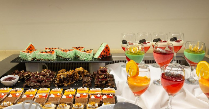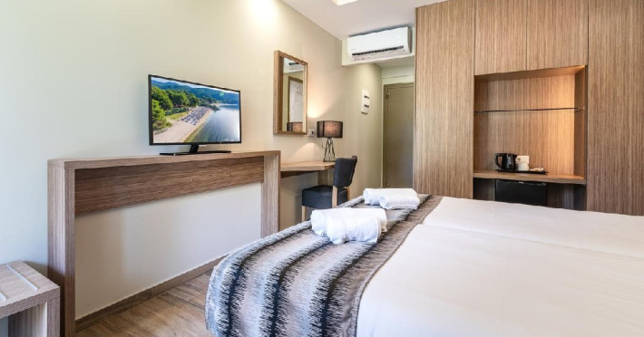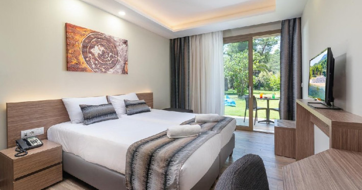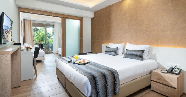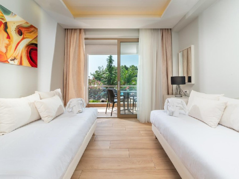 Facilitati camere: TV, AC, internet, frigider, seif, telefon, uscator de par, baie cu dus si balcon. 50 X Duble Superior (21 m2). 64 X Junior Suites cu vedere la gradina (31/33 m2) - dormitor cu pat matrimonial si living cu canapea extensibila. 24 X Junior Suites cu vedere la piscina (31/33 m2) - dormitor cu pat matrimonial si living cu canapea extensibila.