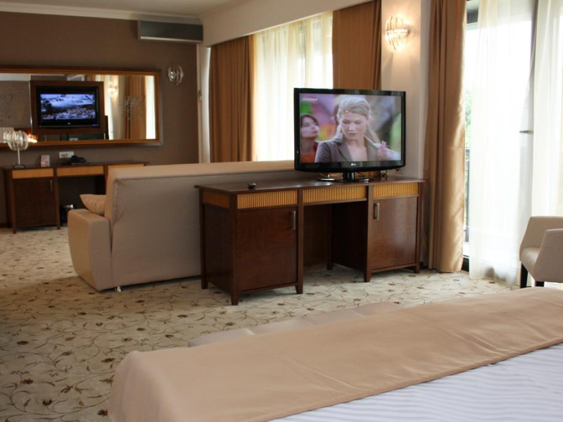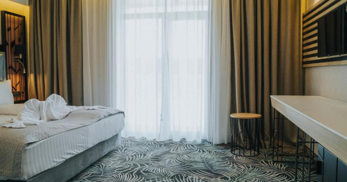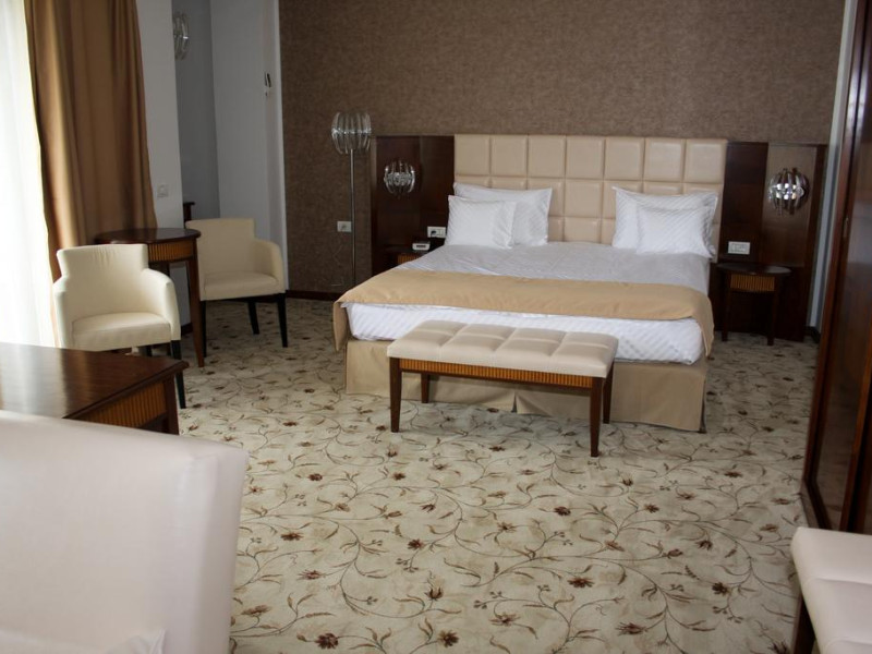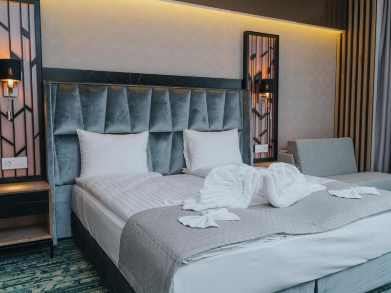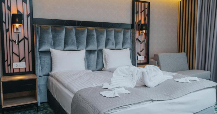 Hotelul President este situat pe drumul european E79 Oradea-Deva, la km 10, la liziera padurii, la 5 minute de zona centrala a statiunii. Facilitati hotel: 104 camere (din care 81 de camere cu balcon si 6 apartamente), restaurant cu terasa acoperita (200 locuri), Taverna Boierului (60 locuri), 4 sali de conferinta, pista de mini-golf, sala de sport, balta de pescuit naturala, 3 piscine (1 interioara si 2 exterioare), centru de sanatate, 2 terenuri de tenis de zgura si 2 terenuri de fotbal pe iarba sintetica, loc de joaca pentru copii, acces la centrul de distractii Aqua President. Facilitati camere: mocheta, AC, TV, telefon, minibar, baie proprie cu dus, Wi-Fi. O parte din camere au si balcon.