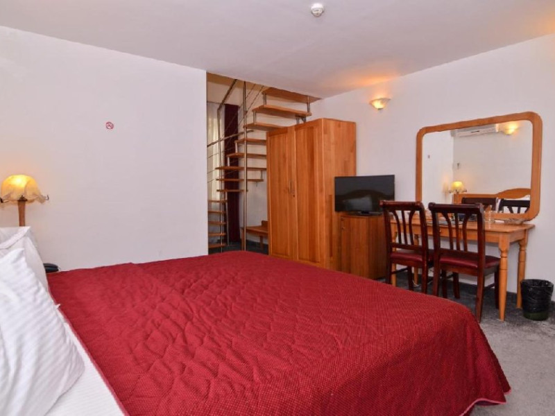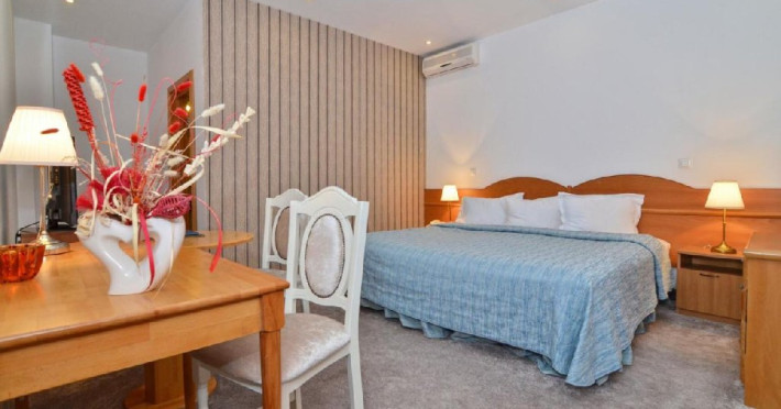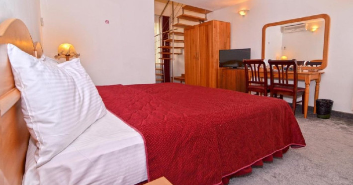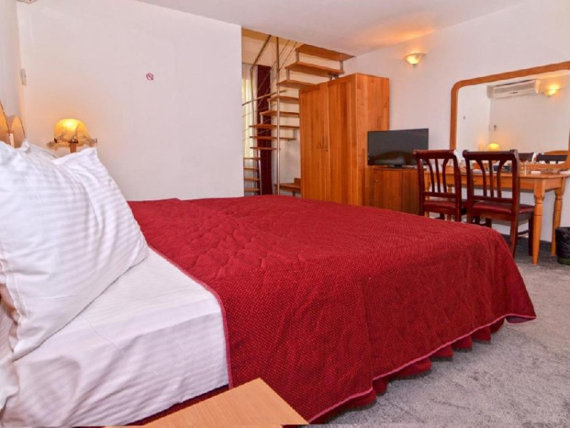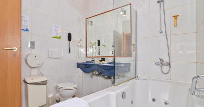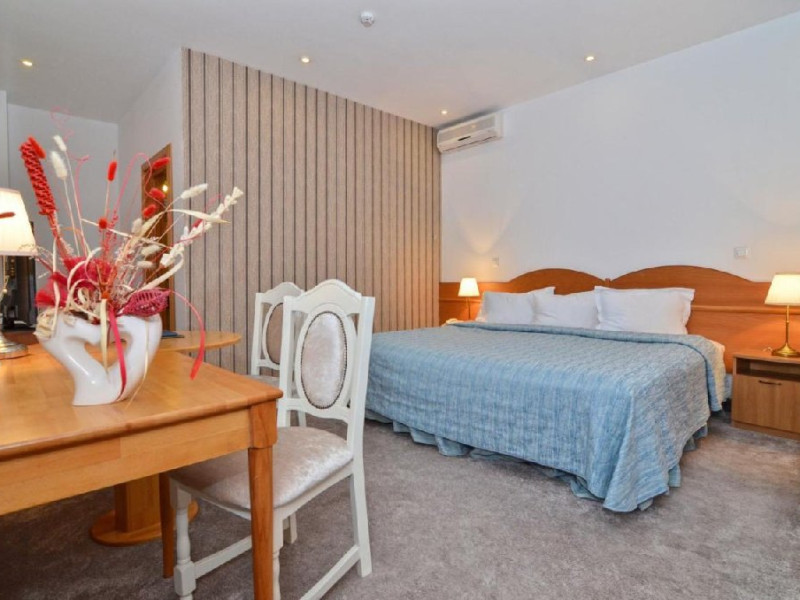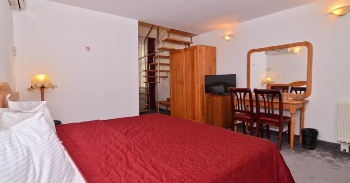 Dotari camere Camerele duble au dotari ultramoderne: tv, telefon pentru apeluri interne si internationale, internet, minibar, seifuri electronice, aer conditionat, incalzire centrala, uscator de par, priza, telefon, dus, iar 5 dintre acestea sunt dotate cu jacuzzi.Nu au balcon. Apartamentele sunt foarte spatioase si sunt dotate cu TV, internet, minibar, telefon, aer conditionat, incalzire centrala, seifuri electronice in fiecare camera, jacuzzi. Camerele nu au balcon, iar singurele camere cu vedere la mare sunt apartamentele.Nu au balcon.