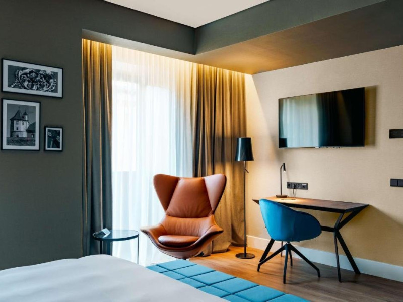 Hotelul Radisson Blu Aurum Brasov ofera servicii de cazare de cinci stele intr-un cadru elegant, situat in centrul istoric al orasului. Amplasat in apropierea principalelor obiective turistice, precum Biserica Neagra si Piata Sfatului, hotelul imbina designul contemporan cu influente arhitecturale locale. Unitatea dispune de camere moderne, restaurante cu preparate rafinate, centru finess si facilitati pentru evenimente. Este o optiune potrivita atat pentru turism de relaxare, cat si pentru calatorii de afaceri.