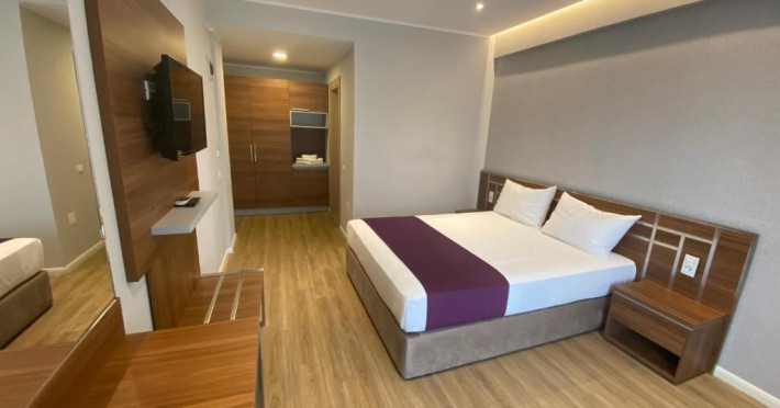 Hotelul Rhodos este situat in Eforie Nord, la doar 100 m. de plaja, in zona Acapulco. Facilitati hotel: locatie renovata 2019, 62 camere (duble standard, duble superioare, triple), receptie non stop, restaurant, terasa, parcare proprie gratuita (in limita locurilor disponibile), wi fi gratuit. Facilitati camere: acces pe baza card, TV LCD, telefon, minibar, AC, baie cu cabina de dus, uscator de par, mobilier nou, mocheta sau parchet in camere, balcon.