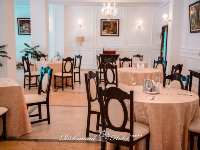 HOTEL RICHMOND 4* MAMAIA Situat in centrul statiunii, la aproximativ 200 de metri de mare, in vecinatatea hotelului Tomis, hotelul imbina luxul cu tehnologia moderna avand scopul de a crea o ambianta placuta atat pentru cei care vor sa se relaxeze cat si pentru oamenii de afaceri SEZLONGURI INCLUSE LA PLAJA PRIVATA A HOTELULUI NOU!!! 25% reducere pentru clientii hotelului la intrarea la AQUA MAGIC MAMAIA Dotari generale: restaurant, parcare proprie - gratuita (in limita locurilor disponibile), internet -wireless gratuit in tot hotelul, bar, bellboy concierge, bar, piscina descoperita, 44 de camere, 3 apartamente. Servicii si facilitati Servicii: room service, curatatorie, spalatorie, parcare proprie, seif, servicii secretariat, room service, late check out contra cost, inchirieri auto serviciu de transfer (contra cost), transfer de la/la aeroport (contra cost), receptie deschisa nonstop, check-in/check-out express, schimb valutar, camera de bagaje, trezirea turistilor la ora solicitata, acces piscina. Dotari camere: Dotari camere: aer conditionat, TV, minibar, seif, baie cu cada, balcon, internet, uscator de par, telefon, halat si papuci de baie, mocheta Servicii masa: se acorda in restaurantul propriu, mic dejun bufet suedez. Restul meselor se pot servi a la carte. (Se poate adauga fisa cont) Facilitati copii (in camera cu 2 adulti): - intre 0-6.99 ani beneficiaza de gratuitate la cazare cu mic dejun, fara pat suplimentar asigurat, Pentru al doilea copil de aceeasi varsta se achita 40 lei/zi - Intre 7-11.99 ani, 60 lei/zi, cu pat suplimentar asigurat si mic dejun inclus - Peste 12 ani achita contravaloarea unui loc cu pat suplimentar si mic dejun inclus - Pentru a beneficia de reduceri, se va prezenta la receptie copie dupa certificatul de nastere