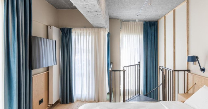 STUDIO cu terasa - Fiecare studio are incalzire prin pardoseala, mobilier la comanda si o baie de calitate superioara cu halate de baie si toate facilitatile necesare. Exista un pat king-size, un dulap luminat, ustensile de bucatarie marca Rosetti, Smart TV cu servicii de streaming de top si o zona versatila de relaxare unde puteti lua masa sau lucra confortabil. DUPLEX SUITE - intins pe doua etaje, Duplexul masoara in total 50 de metri patrati. Etajul superior se AZntinde pe 18 mp, cu o baie spatioasa, pat king-size, un dulap si un televizor ready-to-stream. Etajul inferior masoara 32 mp, avand incalzire prin pardoseala, bucatarie marca Rosetti si o sufragerie relaxanta, cu smart TV si cu un suport de carti pentru a va relaxa seara dupa o zi lunga. * Nu exista nicio poarta de siguranta pe scari. Prin urmare, duplexul nu este potrivit pentru familiile cu copii sub 6 ani.