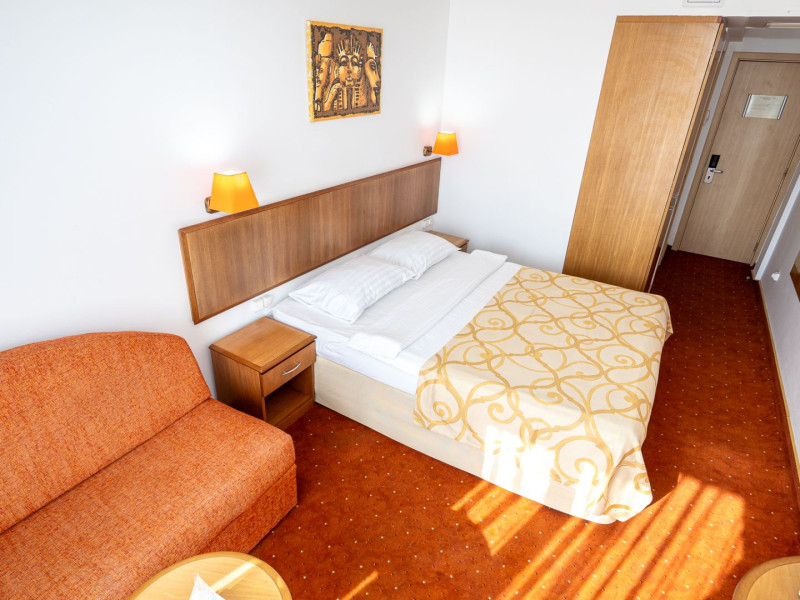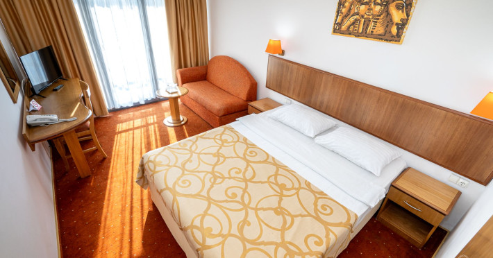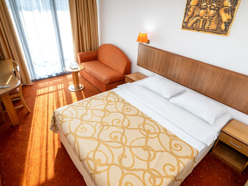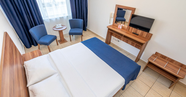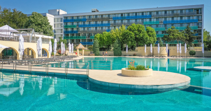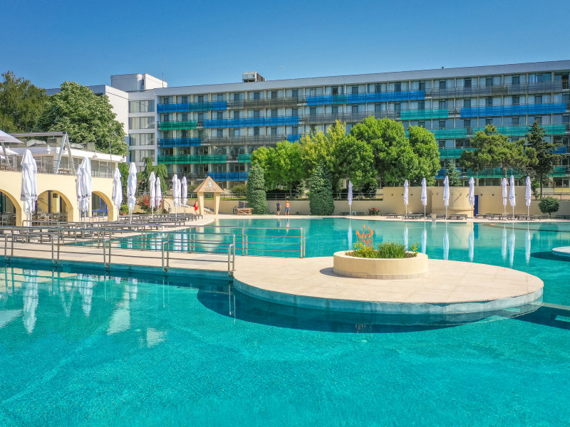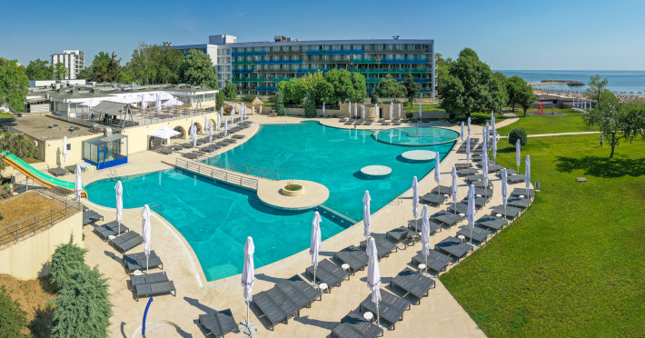 Cleopatra Resort este alcatuit din 3 hoteluri – Cleopatra 3* (277 camere), Narcis 3* (320 camere) si Semiramis 3* (185 camere). Cele 3 hoteluri dispun de o curte comuna cu o suprafata de peste 10.000 mp, o piscina generoasa de peste 1.500 mp, precum si de o plaja privata de peste 5.000 mp. Facilitati resort: restaurant, beach bar, kids club si kids park (loc de joaca pentru copii interior si doua locuri de joaca in aer liber), parcare. Facilitati camere: - Camera dubla/twin Hotel Cleopatra: 15 mp, un pat matrimonial (160/200cm) sau twin (2x80/200cm), acces in camera pe baza de cartela, AC, TV, telefon, seif, baie cu cabina de dus, uscator de par, cosmetice hoteliere, balcon cu mobilier de terasa. - Camera dubla king Hotel Cleopatra: 15 mp, pat matrimonial (160/200cm) si o canapea extensibila pentru o persoana, acces in camera pe baza de cartela, AC, TV, telefon, seif, baie cu cabina de dus, uscator de par, cosmetice hoteliere, balcon cu mobilier de terasa. - Apartament Hotel Cleopatra: 25 mp, compus din dormitor cu pat matrimonial si living cu canapea extensibila, o baie, acces in camera pe baza de cartela, AC, TV, telefon, seif, baie cu cabina de dus, uscator de par, cosmetice hoteliere, balcon cu mobilier de terasa. - Camera dubla matrimoniala/twin Hotel Narcis: 14 mp, dispun de pat matrimonial (160/200cm) sau twin (2x80/200cm). Camerele de la parter NU au balcon. Acces in camera cu cheie mecanica, AC, TV, baie cu cabina de dus, cosmetice hoteliere, balcon cu mobilier de terasa pentru camerele situate la etaj. - Camera dubla matrimoniala/twin Hotel Semiramis: 14 mp, dispun de pat matrimonial (160/200cm) sau twin (2x80/200cm) si sunt situate la etaj. Acces in camera cu cheie mecanica, AC, TV, baie cu cabina de dus, cosmetice hoteliere, balcon cu mobilier de terasa.