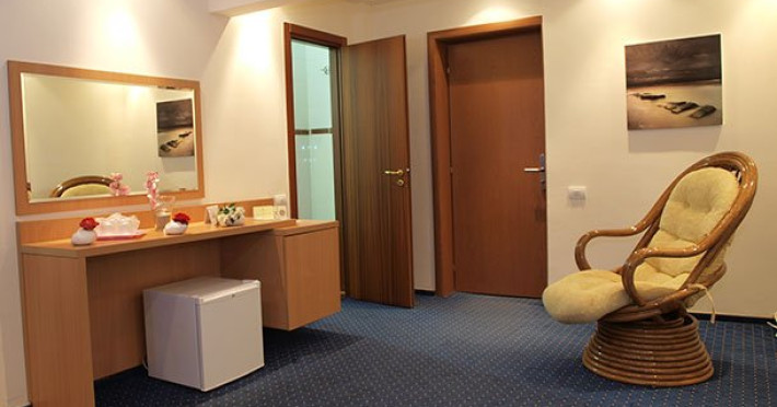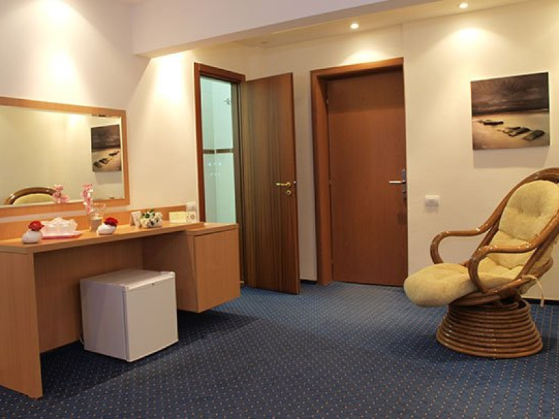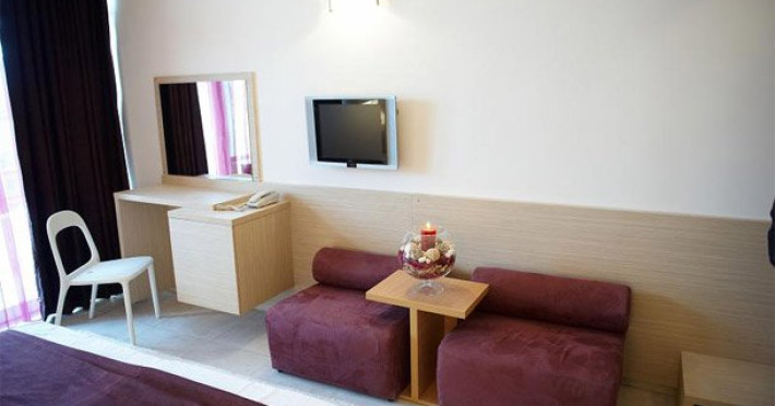 Dotari camera Toate camerele sunt dotate cu: terasa cu vedere la mare sau lac, minibar (racitor), baie proprie, TV LCD, cablu TV, aer conditionat, Wi-Fi, telefon, seif.