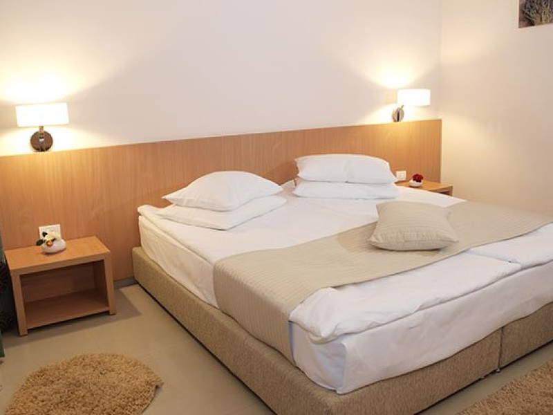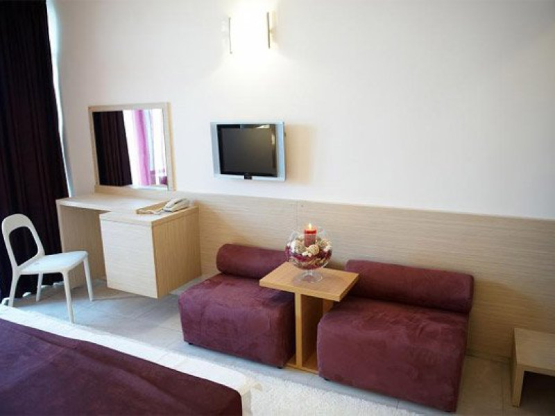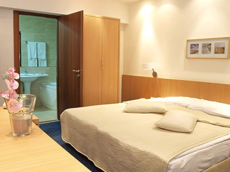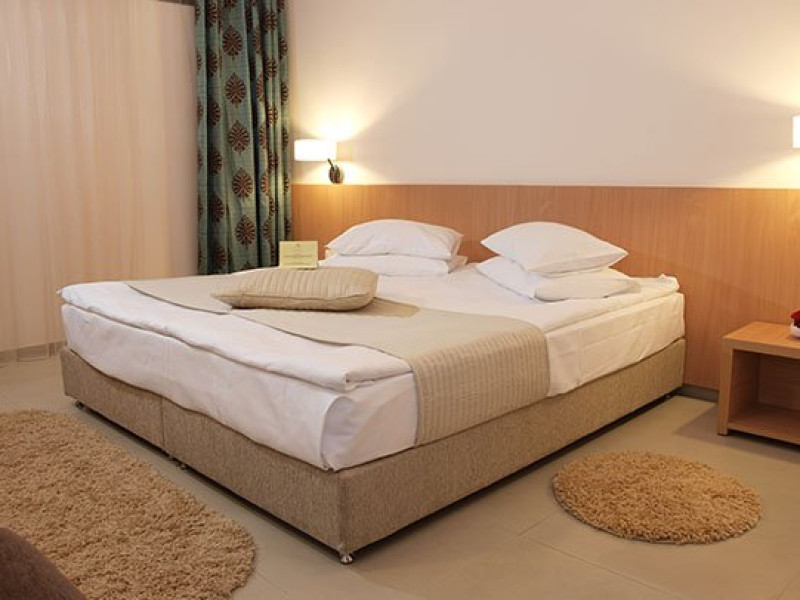 Camere Hotelul are un total de 110 camere: 107 camere duble (parter sau etaj), 2 junior suite si 1 senior suite. Tipuri camera Camera dubla parter: 9 dintre ele au pat matrimonial iar restul au paturi twin. Camerele de la parter nu au balcon dar au o superba priveliste spre gradina hotelului. Camera dubla etaj: Camerele duble de la etaj, sunt repartizate pe 3 nivele, 26 au pat matrimonial, resul sunt dotate cu paturi twin. Toate camerele duble de la etaj au o terasa cu vedere spre lac, mare si gradina din jurul hotelului. Junior Suite: Cele doua apartamente Junior sunt dispuse la etajele 1 si 2, ambele fiind cu vedere spre mare. Apartamente spatioase cu pat matrimonial si canapea extensibila reprezinta solutia ideala pentru vacantele in familie pe litoral. Senior Suite: Apartamentul Senior, situat la etajul al treilea, compus din doua camere cu pat matrimonial.