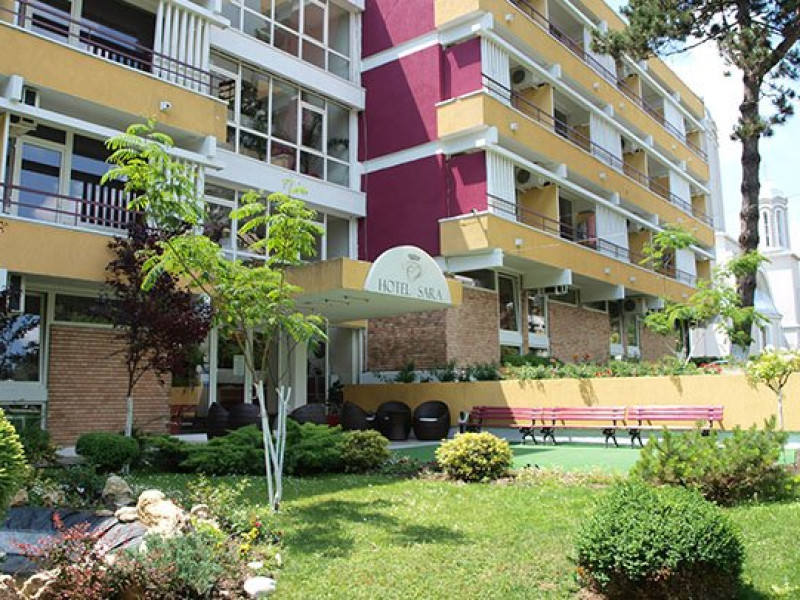Hotelul Sara este amplasat intr-o oaza de verdeata astfel ca poti auzi fosnetul frunzelor si valurile marii din camera si de pe terasa. Hotelul dispune de 5000 mp de spatiu verde cu iesirea spre lacul Neptun si se afla la doar 200 m de plajele cu nisip fin. Amplasamentul, confortul camerelor si serviciile de buna calitate recomanda hotelul pentru o vacanta relaxanta la malul Marii Negre. Hotelul a fost renovat 100% in anii 2010-2011.