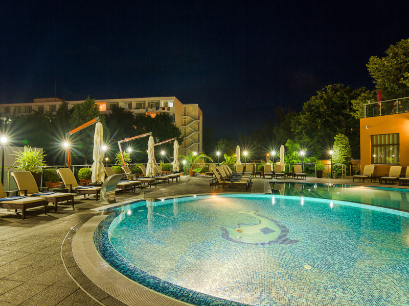Only 150 metres from the beach in Mangalia on the Black Sea coast, this hotel was opened in 2007 and it was also the first one in Romania to receive the ecological certificate for touristic accommodation. Offering air-conditioned accommodation, the 72 rooms are accessible from the main street, the pool terrace or directly from the hotel. It provides a restaurant, a café, a lobby bar, swimming pool, a solarium and a childrens pool. Guests can also enjoy their meal on the hotels terrace. Whirlpool, fitness, Spa, Turkish bath, relaxation chairs and massages (against extra charge) are available.