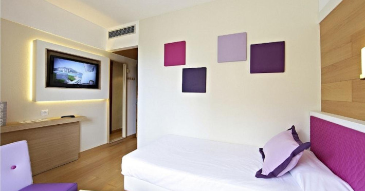 This superior beach hotel exudes elegance and style, enjoying a prime location next to the natural park of Cala Agulla. Surrounded by pines, the hotel offers a retreat of serenity and tranquility miles away from the bustle and stress of daily life. The turquoise waters of Cala Agulla beach lie just 50 metres from the hotel, while numerous shops, bars and restaurants are a mere 700 metres away. The picturesque park and the centre of the town are just 800 metres away, providing guests with a relaxing setting close to the heart of the action. The hotel enjoys a contemporary style, exemplary facilities and impeccable service which will surpass the expectations of even the most discerning traveller. The guest rooms are brightly decorated creating a light-hearted sense of calmness and quiescence, offering the ideal haven for a restful nights sleep.
