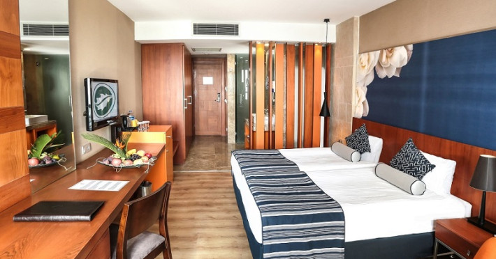 Facilitati hotel: Deschis in anul 2011 si cu o suprafata de 12.000 mp, hotelul dispune de restaurant, piscina, bar, centru SPA, lift, animatie, sala de conferinte, sporturi acvatice, spectacole, teren de tenis, muzica live, boccia, sala de fitness, tenis de masa, volei pe plaja, tir cu arcul, baschet, mini fotbal, darts.