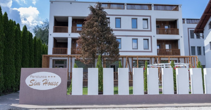 Pensiunea SIM HOUSE - clasificata 3 margarete este situata la 3 minute plimbare de centrul statiunii Gura Humorului pe o strada linistita.Pensiunea ofera oaspetilor loc de joaca pentru copii, acces la bucatarie, gratar pe terasa acoperisului (etajul 3!) de unde se pot admira muntii Bucovinei.Pensiunea Sim House dispune de 15 camere cu balcon, modern mobilate, cu acces la internet Wi-Fi gratuit, grup sanitar individual, aer conditionat, tv cu cablu.