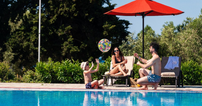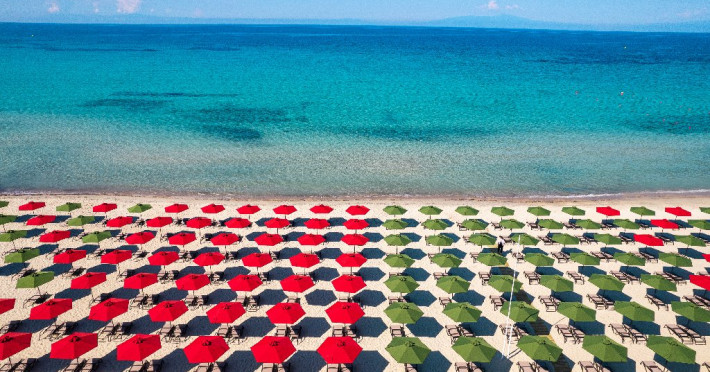 Plaja privata cu sezlonguri si umbrele la piscina si plaja - fara taxa.