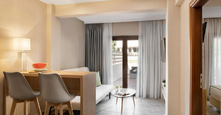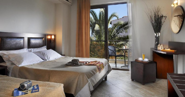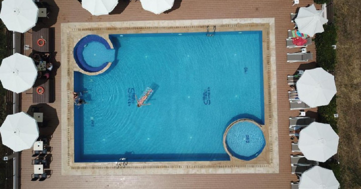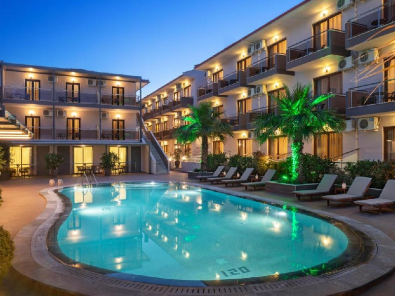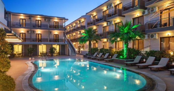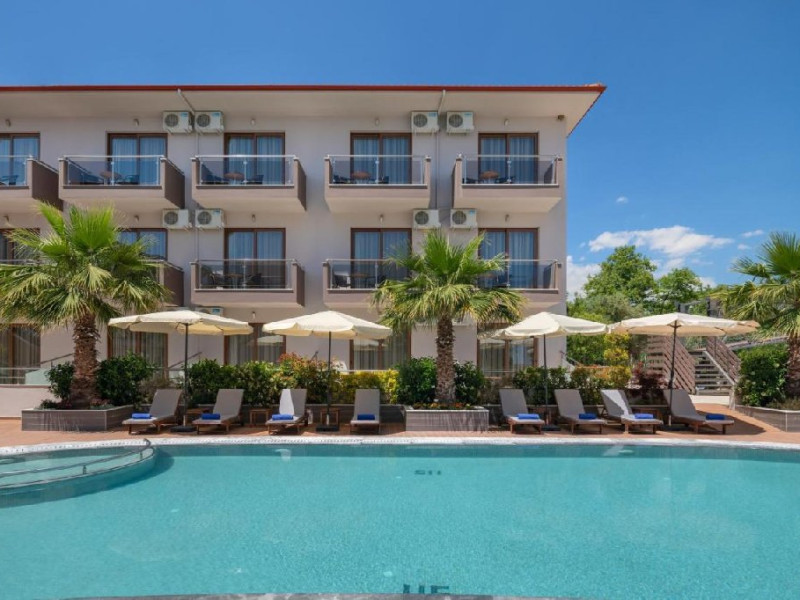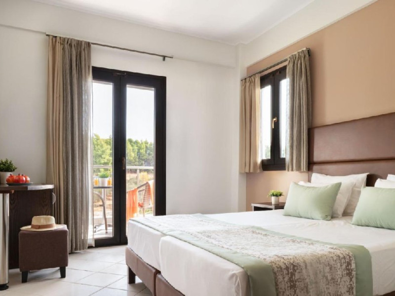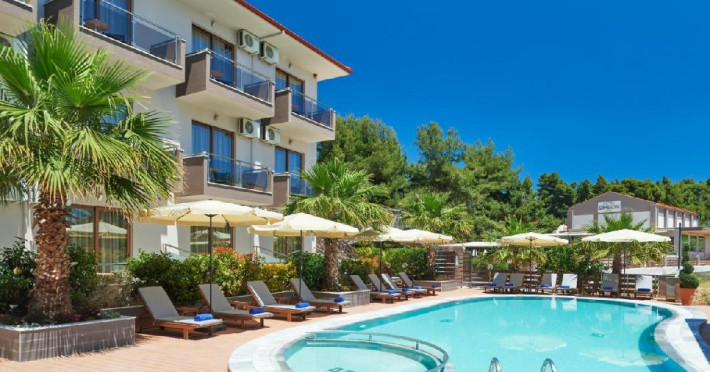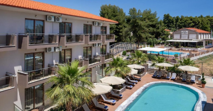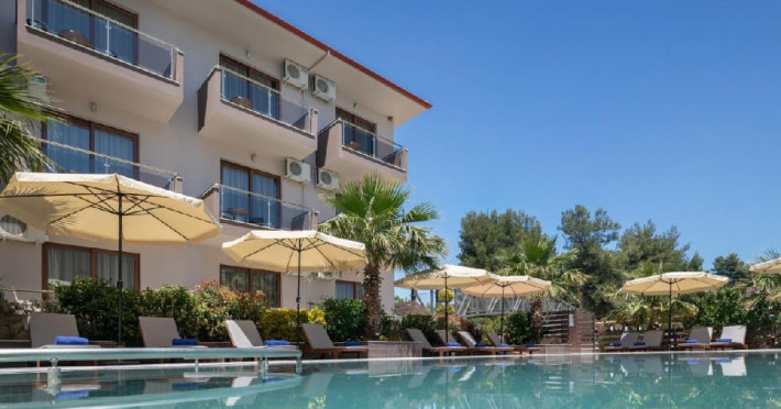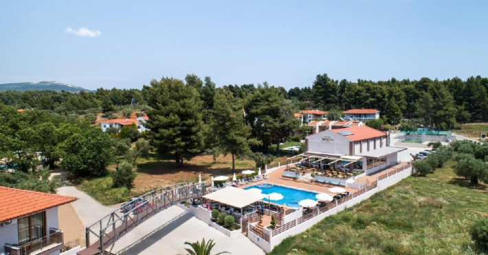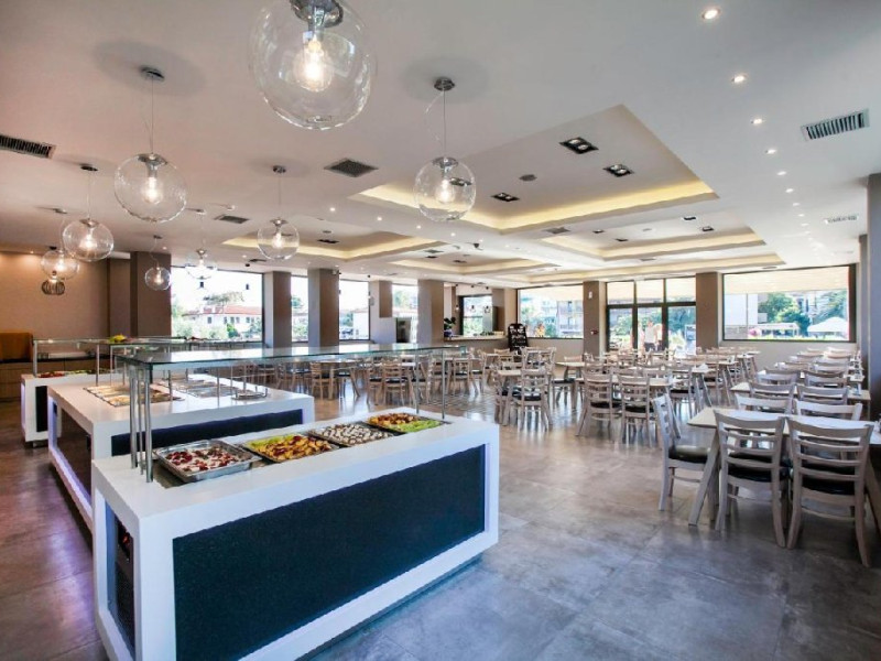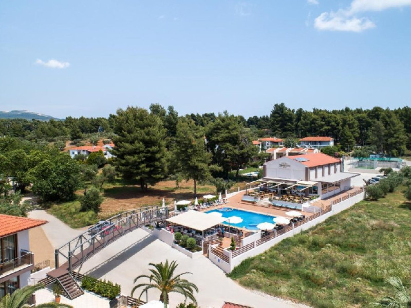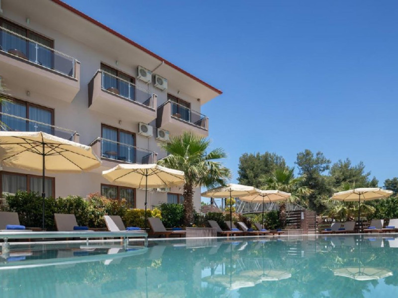 Facilitati hotel: parcare, bar & restaurant, gradina, serviciu de transfer, piscina, piscina cu Jacuzzi, loc de joaca, teren basket & fotbal, program animatie. Plaja privata a hotelului este alcatuita din nisip si pietre/pietricele. Sezlongurile si umbrelele de la piscina sunt gratuite. Sezlongurile si umbrelele de la malul marii sunt contra cost: 2 sezlonguri si o umbrela - 4 eur/zi.