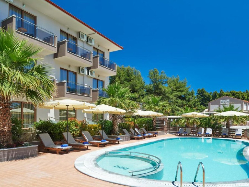 Localizare: Hotelul Simeon se afla intr-un cadru de vis numit Metamorfosi, la doar 70 de pasi de marea Egee. Unitatea de cazare este inconjurata de palmieri si ofera toate servicile si facilitatile necesare pentru petrecerea unui concediu reusit.