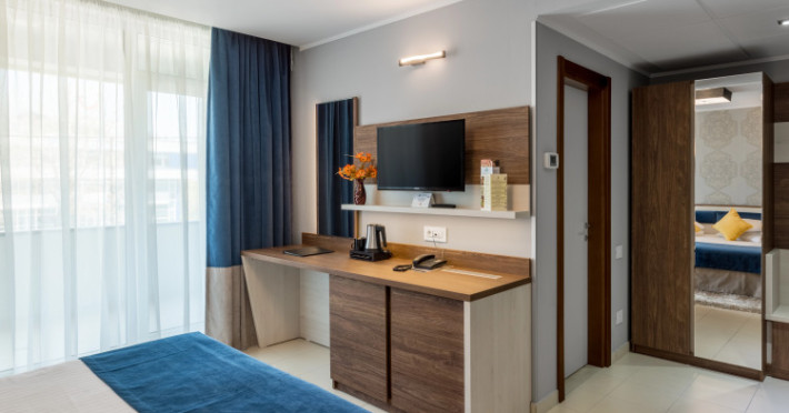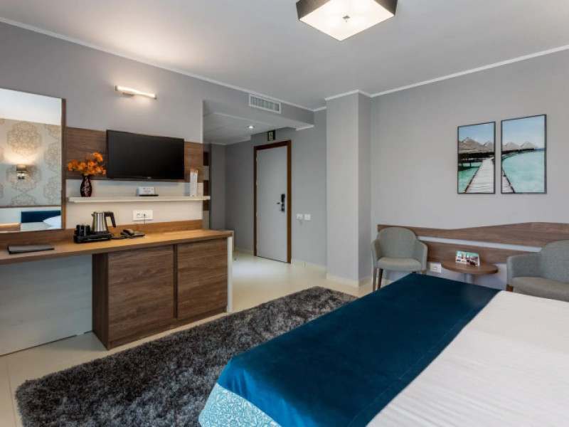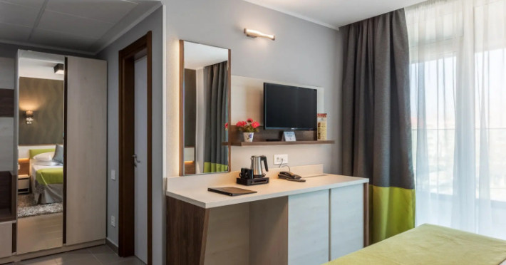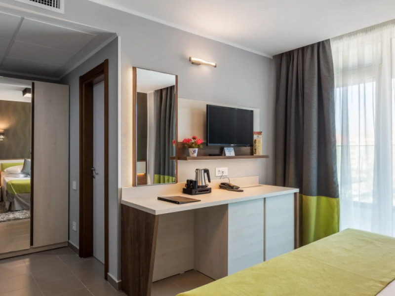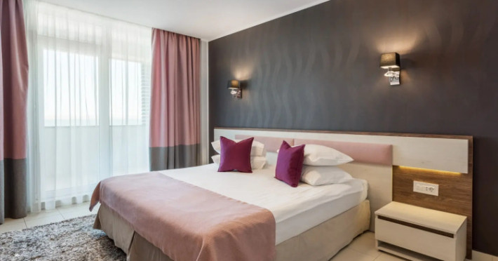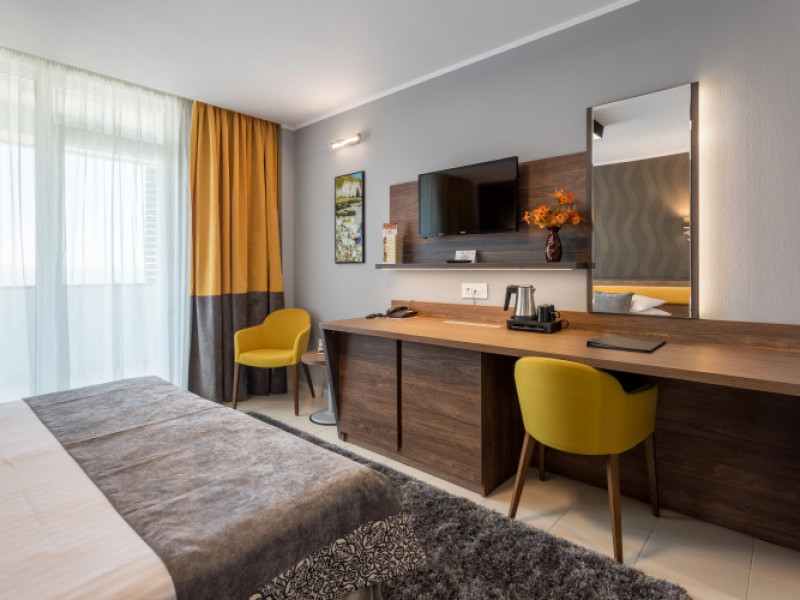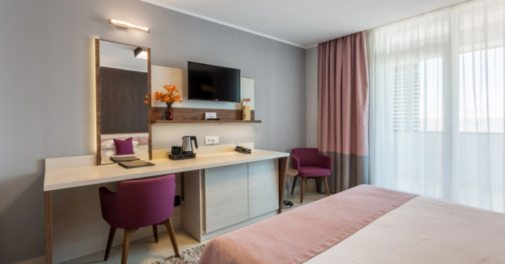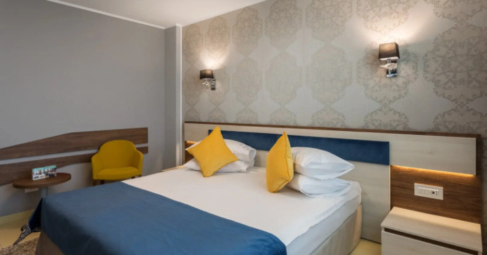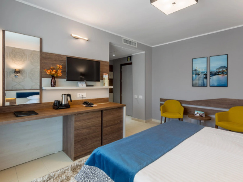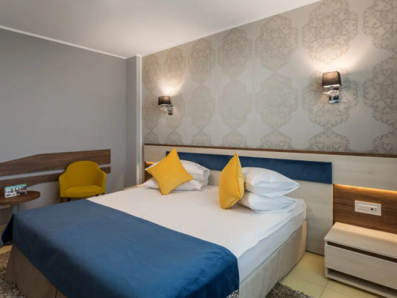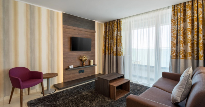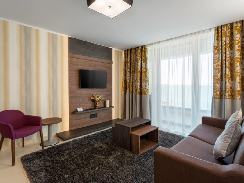 Splendid Conference amp; Spa Hotel is located in the north of Mamaia resort, on the shore of Lake Siutghiol, 200 meters from the beach. The hotel is located 1 km from the clubs in the northern area of the resort, 2.5 km from the Aqua Magic Water Park, 10 km from the train station and 24 km from Mihail Kogalniceanu Airport.Splendid Conference amp; Spa Hotel is located in the north of Mamaia resort, on the shore of Lake Siutghiol, 200 meters from the beach. The hotel is located 1 km from the clubs in the northern area of the resort, 2.5 km from the Aqua Magic Water Park, 10 km from the train station and 24 km from Mihail Kogalniceanu Airport.Meals are delivered to guest rooms on request.There is a laundry at the hotel.Hotel guests can benefit of a wellness center consists of an indoor pool area with Jacuzzi, dry sauna, wet sauna, shower emotional, ice fountain and area relaxation; Massage services are available by appointment notification, with an extra cost. The wellness center focuses exclusively on adults and children from the age of 16.Free Wi-Fi is provided in all rooms and all public areas; free private parking is available on site.Meals are delivered to guest rooms on request.There is a laundry at the hotel.Hotel guests can benefit of a wellness center consists of an indoor pool area with Jacuzzi, dry sauna, wet sauna, shower emotional, ice fountain and area relaxation; Massage services are available by appointment notification, with an extra cost. The wellness center focuses exclusively on adults and children from the age of 16.Free Wi-Fi is provided in all rooms and all public areas; free private parking is available on site.The hotels _33 accommodation spaces_ come with air-conditioning system, LCD TV with cable channels, mini-bar and safety deposit box. The bathrooms are equipped with a shower cabin, hairdryer, toiletries, slippers and a bathrobe.The hotels _33 accommodation spaces_ come with air-conditioning system, LCD TV with cable channels, mini-bar and safety deposit box. The bathrooms are equipped with a shower cabin, hairdryer, toiletries, slippers and a bathrobe..1 EUR not included 0 per room per nightThe minimum allowed age of guests is 16 years.