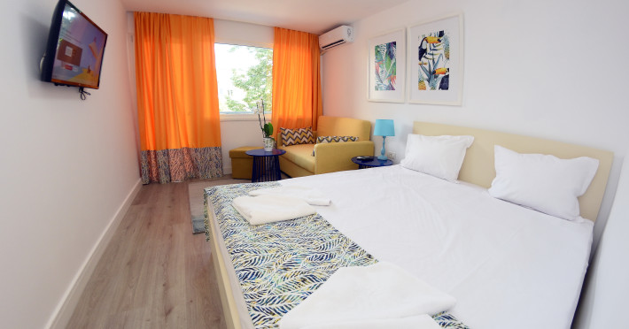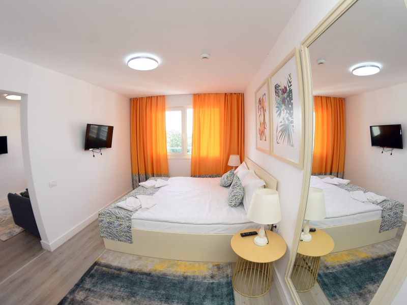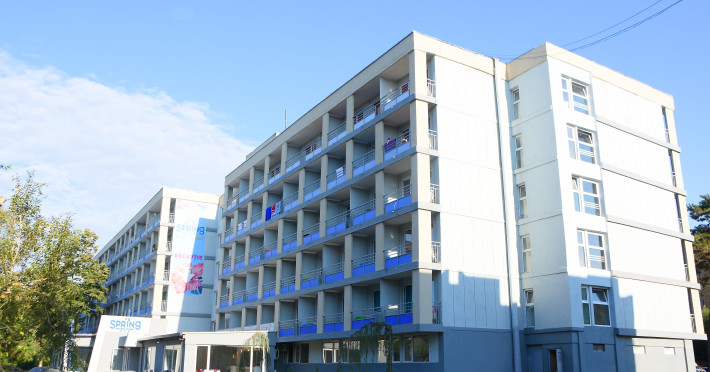 Complex Spring Holiday se afla in zona centrala a statiunii, in imediata apropiere a Complexului Springtime, la o distanta de maxim 700 m de plaja. Facilitati complex: 500 camere si apartamente dispuse in doua corpuri (Spring Blue si Spring Orange), restaurant, bar, terasa, parcare proprie supravegheata, Wi-Fi, business corner, loc de joaca pentru copii. Facilitati camere: sistem de acces pe baza de cheie, instalatie individuala de climatizare, TV led, cablu TV, Wi-Fi, telefon, minibar, pahare, prosoape, cosmetice hoteliere, canapea/fotoliu, baie cu dus, pat bebe la cerere, housekeeping zilnic. Camera dubla matrimoniala BLUE - cuprinde un spatiu deschis cu o suprafata de 16 mp, zona pentru dormit cu un pat matrimonial, canapea extensibila 134cm*194cm, baie cu dus, balcon. Camera dubla matrimoniala ORANGE - cuprinde un spatiu deschis cu o suprafata de 15 mp, zona pentru dormit cu un pat matrimonial, cu sau fara fotoliu extensibil, baie cu dus, balcon. Apartament - cuprinde un spatiu de 32 mp, format dintr-un living cu canapea fixa sau extensibila si un dormitor cu pat matrimonial, 1 baie cu dus, balcon deschis si chicineta dotata cu chiuveta, cuptor cu microunde , filtru de cafea , fierbator, frigider, masa de calcat, uscator de par, fier de calcat.