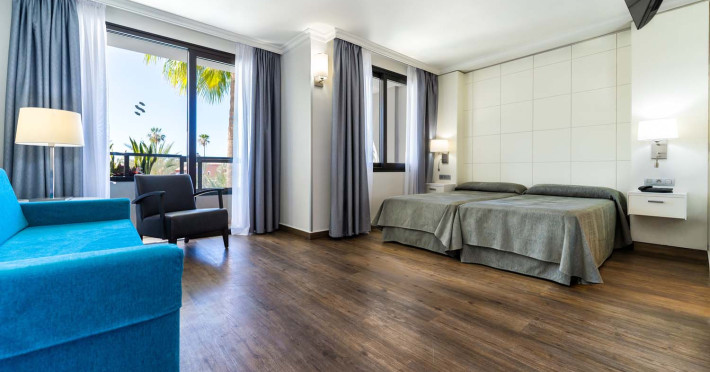 The pleasant rooms are all fitted with an en suite bathroom with hairdryer, direct dial telephone, satellite TV, minibar, air conditioning (in summer), hire safe and balcony. The rooms have twin beds and a sofa bed, however a double bed can be requested.