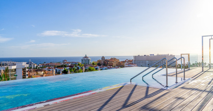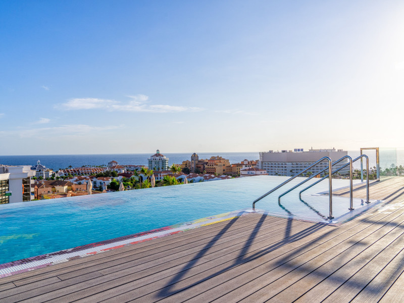 This stylish hotel is situated in the southern quarter of Playa de las Americas, around 350 m from the beach and 1 km from the town centre. The building is terraced and decorated with wonderful flowers. The Safari shopping and entertainment centre is around 200 m away and the public transport network 50 m away. The property is 17 km from Tenerife South Airport.