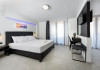 Facilitati camere: AC, TV, internet WiFi, uscator de par, frigider, chicineta, seif, baie cu dus si balcon. Camerele economy se afla la demisol! Camerele de familie sunt formate din 2 incaperi (paturi matrimoniale). In una din ele se afla chicineta.