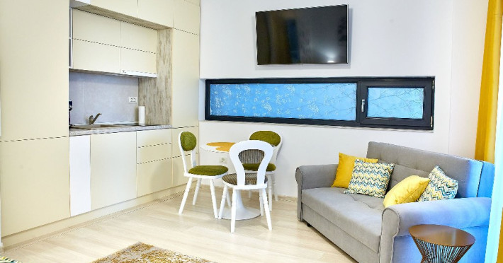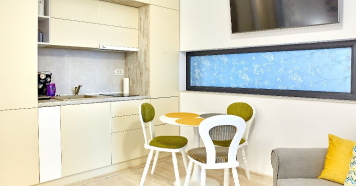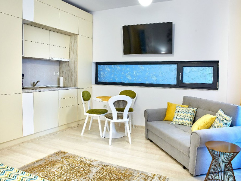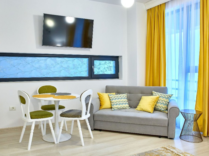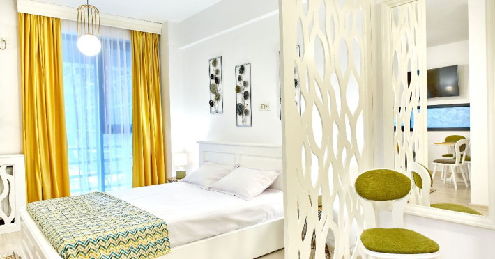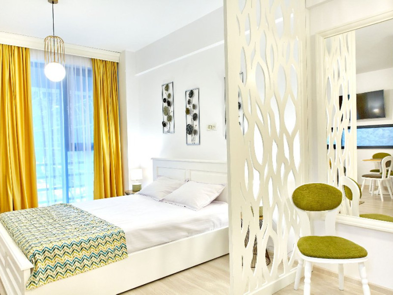 Studio Golden Situat la 100 m de plaja unde eleganta, simplitatea si bunul gust sunt puse pe primul plan va punem la dispozitie o garsoniera cocheta pentru a va bucura de liniste dar si de distractie in cluburi renumite din Mamaia Nord alaturi de familie si prieteni. Studio Golden este o garsoniera putand caza astfel 4 persoane deoarece este dotata cu un pat matrimonial si canapea extensibila . Garsoniera pune la dispozitia dumneavoastra smart TV cu o gama larga de posturi, internet nelimitat de mare viteza prin Wi-Fi cat si aer conditionat pentru zilele toride de vara. Bucataria este mobilata si utilata cu electronice si electrocasnice noi sporind astfel confortul casei cat si ale turistilor care ne trec pragul. In zona gasiti o diversitate de restaurante, cu specific diferit. Intr-o arie de 500m gasiti mai multe plaje (astfel, va puteti alege zona unde doriti sa va petreceti ziua relaxant si sa va bucurati de soare). Studio Golden este foarte spatios, fiind amplasat intr-o cladire noua. Acesta beneficiaza de un interior placut si relaxant, oferind o priveliste spre mare Garsoniera este mobilata si utilata modern si dispune de: a pat matrimonial si canapea extensibila -aer conditionat -smart TV -bucatarie utilata si mobilata complet -Wi-Fi gratuit -masina de spalat rufe -baie cu cabina de dus Se inchiriaza pe minim 3 nopti iar rezervarile se pot face prin plata unui avans de 25% din suma totala de cazare. ADRESA: Strada D25 nr 56, et 1, ap p3