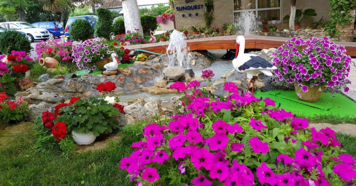 Dotari si servicii Complex Turistic Sunquest este locul unde sunteti intotdeauna bineveniti pentru a petrece o vacanta placuta pe litoralul romanesc. Integrat intr-o proprietate privata de peste 10.000 m.p. si beneficiind de un cadru natural deosebit, complexul a pastrat si a integrat in ansambul sau un colt din vechea padure Comorova ce acoperea odata intreaga zona de coasta a Marii Negre din partea de sud a litoralului romanesc. Complex turistic Sunquest include. - Hotel Sunquest - un bar de zi aflat in receptia hotelului - un restaurant spatios cu doua terase - loc de joaca pentru copii amenajat in imediata vecinatate a terasei restaurantului - doua piscine exterioare, una pentru copii si una pentru adulti - dotata cu jacuzzi, fantani arteziene, caderi de apa si lumini subacvatice - parcare proprie (cu o capacitate de 90 locuri si acces pe baza de card) - centru de conferinte cuprinzand 2 sali mobilate si dotate corespunzator si un salon de coffe-break.Turistii vor avea asigurate GRATUIT pentru plaja cate 2 sezlonguri pentru fiecare camera dubla (indiferent de numarul adultilor sau al copiilor cazati in camera). Turistii vor primi de la receptie bratari de identificare, accesul la PLAJA si PISCINA Hotelului Sunquest facandu-se cu conditia purtarii acestora la mana.
