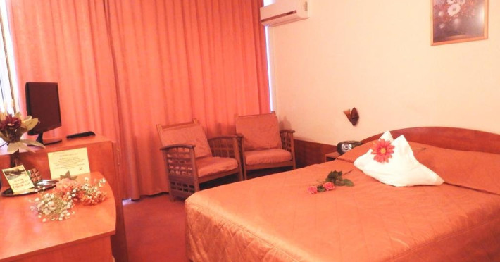 Servicii masa MASA: restaurant propriu, mic dejun, pranz si cina in sistem bonuri valorice. Dotari camere Camerele de la etaj sunt dotate cu balcon si mobilier de terasa, grup sanitar cu cadita de dus, TV, radio-casetofon cu/fara CD, frigider/minibar, seif, aer conditionat, uscator pentru par. Toate camerele au aceleasi dimensiuni si dotari, deosebirea consta in faptul ca pot fi dotate cu pat matrimonial cu dimensiunea 140/200 (caz in care spatiul din camera este putin mai generos) sau cu 2 paturi cu dimensiunea de 90/200, acestea fiind unite. De asemenea, pardoseala poate fi acoperita cu mocheta, parchet sau gresie.