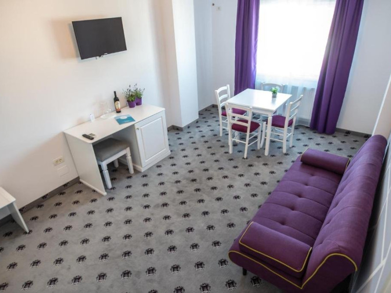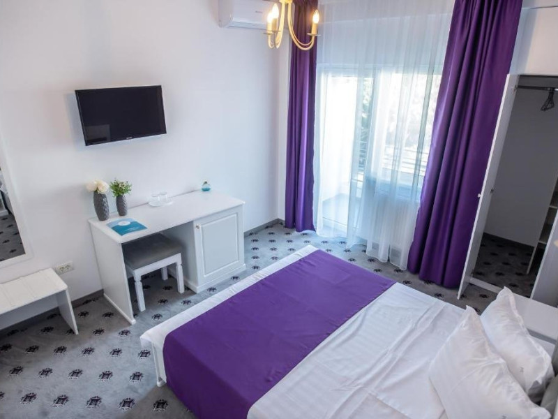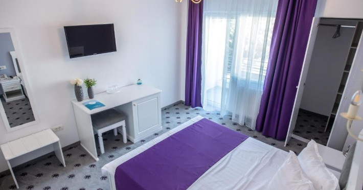 Localizare: Hotelul Tadora se afl amplasat in statiunea Eforie Nord, la aproape 300 de metri de trmul mrii si aproape de cea mai intins plaj din Eforie Nord. Descriere: Constructia, designul si amenajarile interioare se bazeaz pe elementele clasice, dar moderne. Pentru a crea spatii armonioase, camerele hotelului au fost decorate in nuante echilibrate de alb, gri si mov. Elegant si rafinat, dar in acelasi timp cald si primitor, Hotelul Tadora din Eforie Nord este potrivit atat pentru oamenii de afaceri, cat si pentru artisti si boemi, pentru cupluri ce doresc o atmosfer romantic, pentru grupuri de prieteni dornici de relaxare si distractie, dar si pentru familiile cu copii de toate varstele. Cazare: Constructia, designul si amenajarile interioare se bazeaz pe elementele clasice, dar moderne. Pentru a crea spatii armonioase, camerele hotelului au fost decorate in nuante echilibrate de alb, gri si mov. O parte din camere au vedere la mare, sunt elegant decorate si atent ingrijite. Puteti alege o Dubl Standard din cele 24 disponibile sau o Dubl Superioar din cele 6 disponibile. Pentru un plus de confort punem la dispozitie 4 apartamente din care 2 apartamente exclusiviste la ultimele etaje al hotelului cu vedere panoramic. Camera dubla twin: Hotel Tadora Eforie Nord dispune de 3 camere twin fr balcon in suprafat de 17 mp dotate cu birou de lucru, TV, minibar, telefon, conexiune internet wireless gratuit, aer conditionat, baie cu cabin de dus, usctor de pr, oglind pentru cosmetic, articole de toalet gratuite si sistemul de acces in camer se face pe baza cartelelor magnetice. Bucurati-v de un somn odihnitor, intr-un microclimat elegant, cu mobilier din lemn masiv in culori plcute si dou paturi twin de 90x200. Tablouri originale, cu tem marin, se regsesc in fiecare camer, oferindu-v un sentiment de bine pe toat perioada sederii. Poate acomoda maxim 2 adulti. Camera dubla standard: Camerele noastre au fost atent proiectate, urmrindu-se in principal functionalitatea si confortul oferite oaspetilor nostri. Bucurati-v de un somn odihnitor, intr-un microclimat elegant, cu mobilier din lemn masiv in culori plcute si pat matrimonial. Tablouri originale, cu tema marin, se regsesc in fiecare camer, oferindu-v un sentiment de bine pe toat perioada sederii la Hotel Tadora. Cu o suprafat incepand de la 20 mp, camerele duble standard sunt dotate cu birou de lucru, TV, minibar, conexiune internet wireless gratuit, telefon, aer conditionat, baie cu cabin de dus, usctor de pr, oglind pentru cosmetic, articole de toalet gratuite si sistemul de acces in camer se face pe baza cartelelor magnetice. Camerele au balcon cu spatiu pentru relaxare. Poate acomoda maxim 2 adulti si 1 copil sub 12 ani pentru care se poate solicita contra cost un pat suplimentar in camer in limita disponibilittii. Camera dubla superioara: Aceste camere, dup cum sunt de altfel si denumite, satisfac standardele superioare in ceea ce priveste spatiul si rafinamentul. Cu suprafete pornind de la 23 mp, camerele sunt potrivite pentru o vacant luxuriant, oferind confort, stil si personalitate, intr-un ansamblu desvarsit. Camera are un pat matrimonial si beneficiaz de urmtoarele dotri: birou, TV, telefon, minibar, conexiune wireless la internet gratuit, aer conditionat si sistemul de acces in camer se face pe baza cartelelor magnetice. Camera de baie are cabin de dus, usctor de pr, oglind pentru cosmetic, articole de toalet gratuite si o atmosfer de relaxare minunat. Balconul spatioasei camere ofer o imagine marin si un moment de relaxare. Poate acomoda maxim 2 adulti si 1 copil sub 12 ani pentru care se poate solicita contra cost un pat suplimentar in camer in limita disponibilittii. Poate acomoda maxim 2 adulti. Apartament junior: Atmosfera apartamentelor este una deosebit de cald, ce include mobilierul deosebit din lemn masiv, conferind elegant si subtilitate. Tablourile originale surprind plcut si intregesc atmosfera de elegant a unui hotel de la mare, fr varst, care se adreseaz spiritului. Apartamentul Junior cu o suprafat de 43 mp, este compus din dou dormitoare cu pat matrimonial, dou TV-uri, dou dressing-uri, dou birouri de lucru, dou minibaruri, dou telefoane, conexiunea la internet wireless gratuit si sistemul de acces in camer se face pe baza cartelelor magnetice. Apartamentul are doua camere de baie ce sunt dotate cu cabin de dus, lavoar si vas de toalet. Usctorul de pr, oglinda pentru cosmetica si articolele de toaleta gratuite vin in intampinarea nevoilor dumneavoastr. Apartamentele Junior sunt situate la nivelul superior al structurii si sunt prevzute cu dou balcoane. Descoperiti relaxarea in apartamentele noastre intr-o not de lux si elegant. Poate acomoda maxim 4 persoane. Apartament executiv: Atmosfera apartamentelor este una deosebit de cald, ce include mobilierul deosebit din lemn masiv de culoare alba, conferind elegant si subtilitate. Tablourile originale surprind plcut si intregesc atmosfera de elegant a unui hotel de la mare, fr varst, care se adreseaz spiritului. Apartamentul Executiv cu o suprafat de 43 mp, este compus din dormitor cu un pat matrimonial si un pat single, TV, dressing si comod iar camera de zi este prevzut cu o canapea extensibil de 140Ax200 cm, birou de lucru, masa si patru scaune, minibar, TV, telefon, conexiunea la internet wireless gratuit si sistemul de acces in camer se face pe baza cartelelor magnetice. Apartamentul beneficiaz de doua televizoare, unul in zona de relaxare si unul in dormitor. Camera de baie este dotat cu cabin de dus, lavoar si vas de toalet. Usctorul de pr, oglinda pentru cosmetic si articolele de toalet gratuite vin in intampinarea nevoilor dumneavoastr. Apartamentele Executiv sunt situate la nivelul superior al structurii si sunt prevzute cu balcon. Ferestrele mari ale camerelor v ofer posibilitatea de a v delecta privirea cu imaginea Mrii Negre si a ambarcatiunilor acostate in larg. Descoperiti relaxarea in apartamentele noastre intr-o not de lux si elegant! Poate acomoda maxim