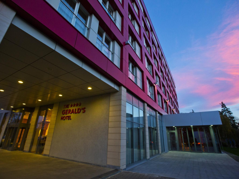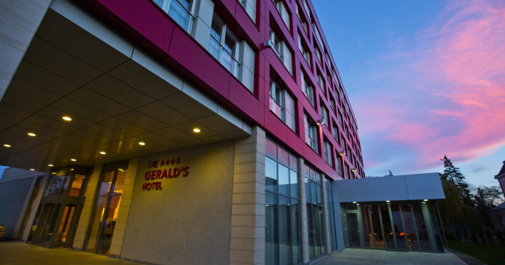 Hotel Gerald este situat in apropierea parcului municipal si de Primaria Municipiului Radauti. Facilitati Hotel Hotelul dispune de 99 camere (duble) inclusiv 10 Apartamente Junior, restaurant cu terasa de vara si bar - deschis in fiecare zi, 2 sali de conferinta echipate complet, cu o capacitate de 100 de persoane, spalatorie, sala de fitness, parcare in fata hotelului. Facilitati Camere Designul contemporan, camerele exclusiviste, spatiile pentru nefumatori si The Geralds Restaurant Bar satisfac cerintele clientilor nostri.