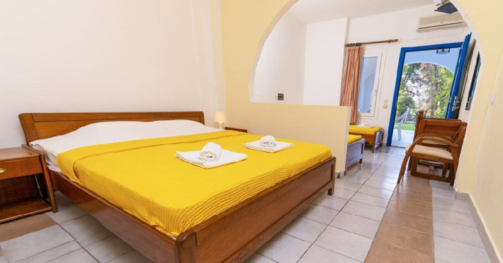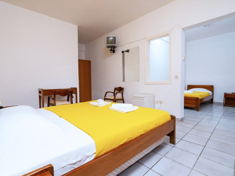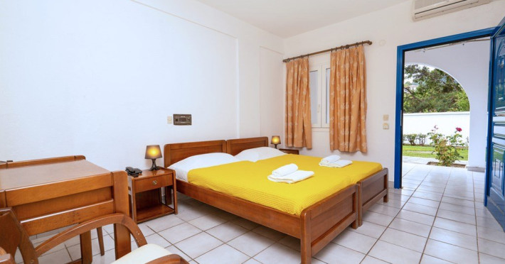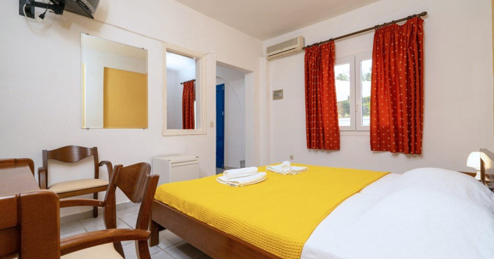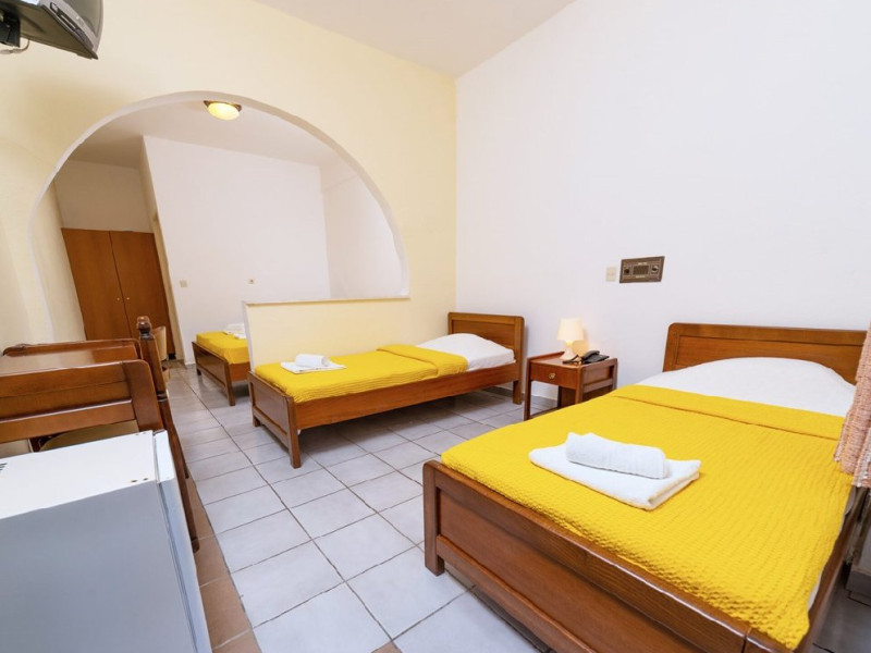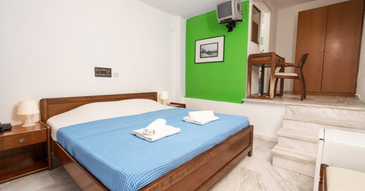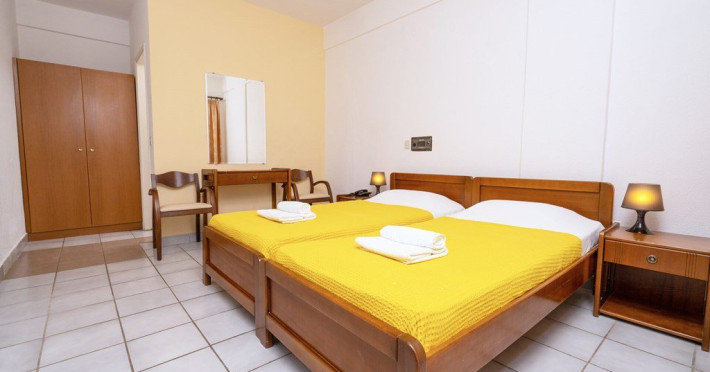 Facilitati camere: camere decorate modern, cu aer conditionat, tv satelit, uscator de par, telefon, mini-frigider, baie cu dus si balcon. Camerele duble: 15-20 m2 Camera quadrupla: pat matrimonial & 2 paturi twin - 25 m2. Camera Family: pat matrimonial & 1 pat twin & pat extensibil - 25 m2. Menaj zilnic, schimb de lenjerie - de 3 ori pe saptamana.