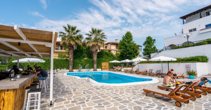 Localizare: Theo Bungalows este o afacere de familie ce se afla intr-un mic paradis, inconjurat de pini si leandrii colorati. Unitatea de cazare are mai bine de 30 de ani de experienta si va face tot ce-i sta in putina pentru ca cei care le trec pragul sa aiba parte de un concediu relaxant. Theo Bungalows este un complex format din 40 de camere spatioase, ce se afla in Kriopigi, Halkidiki.