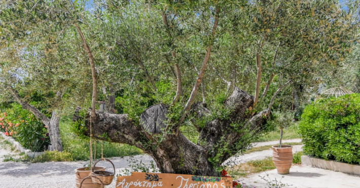 Built on a private plot of land bristling with trees and flowers, in the quiet village of Kallithea, not far from three tourist destinations, Therianos Villas are four beautifully decorated holiday homes, distinguished into two types. The Master Villas measure 85 sq.m. and can sleep up to 5+1 persons. Their ground floor has a bedroom, a fully equipped kitchen, a living room and a bathroom with a bathtub, whereas the attic is a cosy, open-plan bedroom. The Villas measure 65 sq.m. and can sleep up to 4+1 persons. They offer a fully equipped kitchen, a living room, two bedrooms (one in the attic) and a bathroom with a bathtub. All villas feature verandas with a relaxing view of the garden, and on the Therianos Villas grounds you will also find a children’s play area and a shop with artefacts, souvenirs and local products!