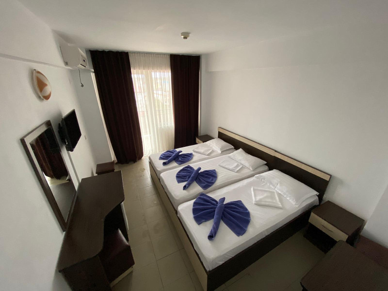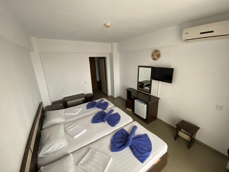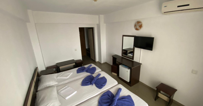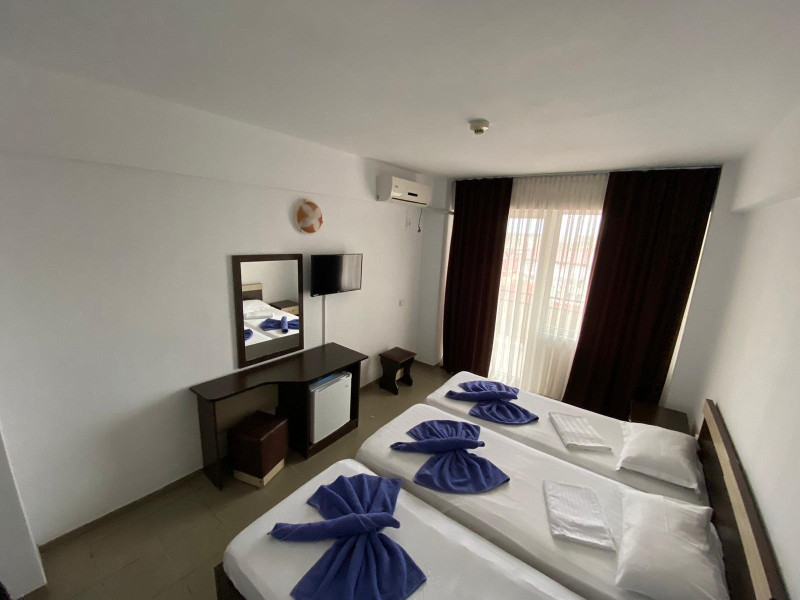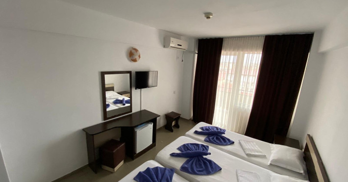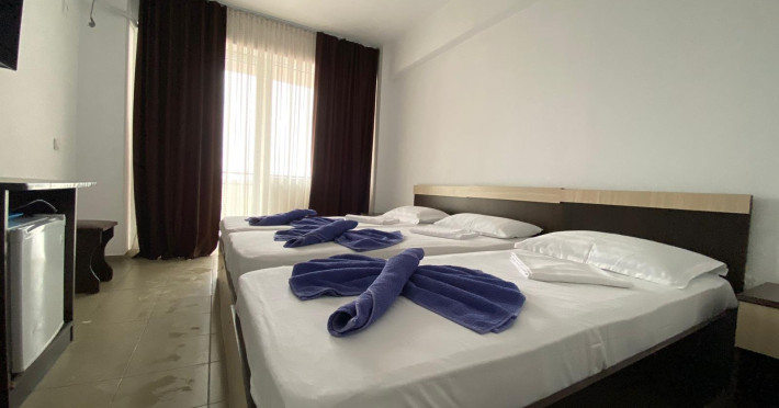 Tiberius Residence *** Costinesti este amplasat in zona de nord a localitatii Costinesti, la circa 80 m de plaja, in cartierul rezidential si la doar 5 minute de mers pe faleza, pana in centrul statiunii. Hotelul este inconjurat numai de case de vacanta si moteluri, zona fiind departe de zgomotul statiunii, iar turistii pot beneficia aici de linistea si confortul de acasa. Camerele din Tiberius Residence sunt extrem de spatioase si dispun de dotari care sa ii faca pe clienti sa petreaca aici clipe de neuitat, beneficiind de conditii modernizate la standarde inalte. De asemenea, toate camerele sunt dotate cu bai proprii cu dus, aer conditionat, TV/cablu, minibar. Tiberius Residences dispune si de un restaurant cu linie de autoservire cu terasa cu o capacitate de 150 de locuri unde va puteti delecta cu cele mai proaspete si delicioase preparate culinare, gatite de un personal specializat.