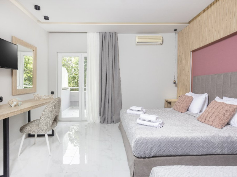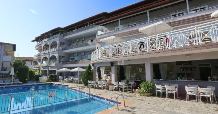 Localizare: Hotelul este localizat in Hanioti, pe bratul Kassandra, la doar 300 m distanta de plaja. Statiunea Hanioti este una dintre cele mai populare din Halkidiki, atragand o multime de turisti an de an. Zonele verzi, impadurite, plajele cu ape azurii si nisip fin si tavernele pline de viata fac din Hanioti o destinatie de neuitat.